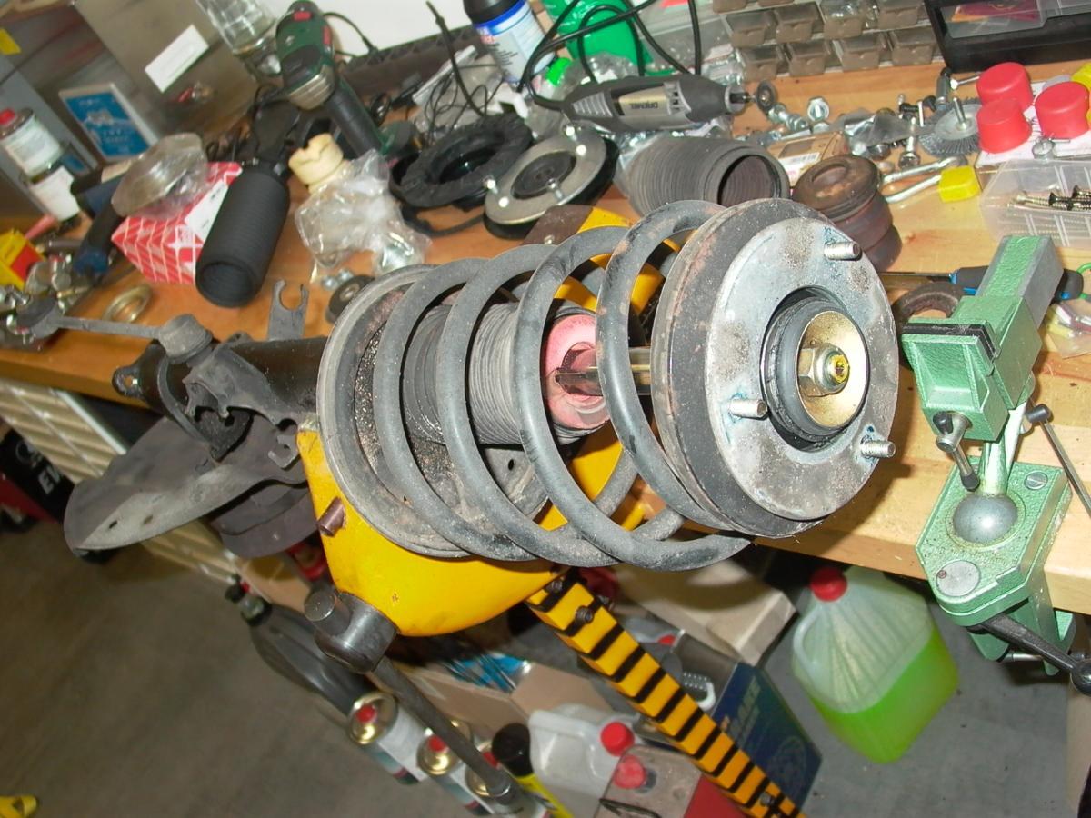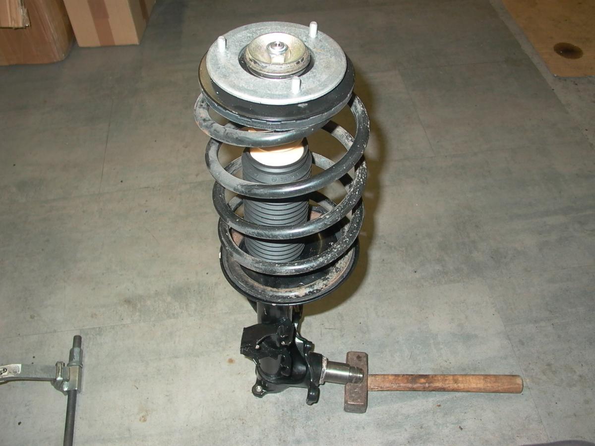 So, jetzt gab es doch noch was zu tun. Ich hatte den Verdacht, dass die Stoßdämpfer vorne nicht mehr prickelnd sind, ab zum TÜV mit Stoßdämpferprüfstand, und ja, vorne rechts war der ziemlich hin. Also stand es an die Federbeine zu erneuern. Die Federbeine sind die Stoßdämpfer. Bei BMW gibts die noch, für ziemlich viel Geld (um die 1400,-- für einen). Viele räumen das Innenleben aus und setzten Dämpferpatronen ein. Das liest sich einfach, fängt aber schon damit an, dass die obere Dämpferverschraubung meist hoffnungslos verrottet ist. Dann muss das ganze Innenleben raus und die Innenseite muss lackiert oder sonstwie konserviert werden, denn sonst rostet das Federbein von innen durch. Ich entschied mich für einen Mittelweg, nämlich von Ralf Pusch überholte Federbeine. Hier der Bericht.