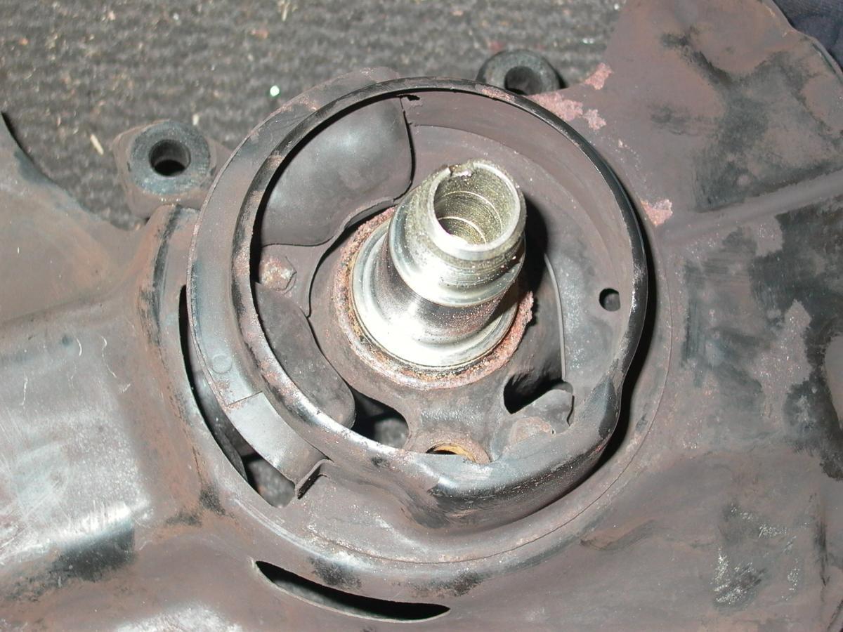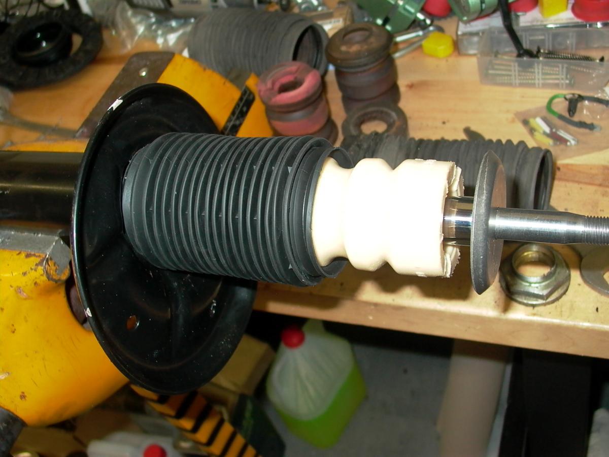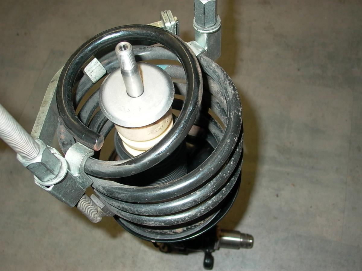 Der untere Federteller ist geformt, in die Ausformung oben im Foto kommt das untere Federende.