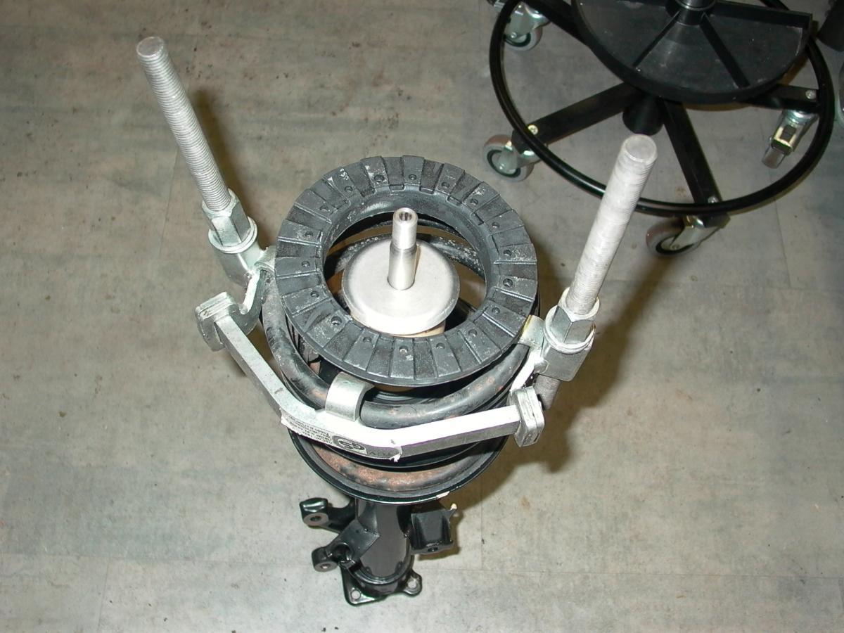 Und lösen die Mutter sobald die Feder frei von den Tellern ist.