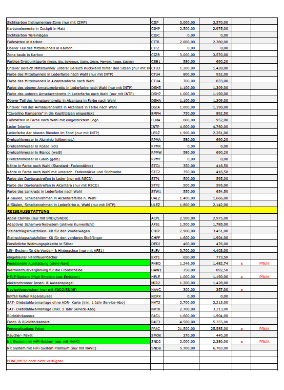 Ok, die Optionen sind in der Preisliste allerdings als Serienausstattung mit 0,-€ aufgeführt, wurden dann aber trotzdem mit ca.25t€ in Summe berechnet?