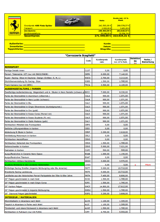 Ich kenne die Pista Optionen nicht, aber 0 Euro im Zusammenhang mit Ferrari existiert nicht 😁