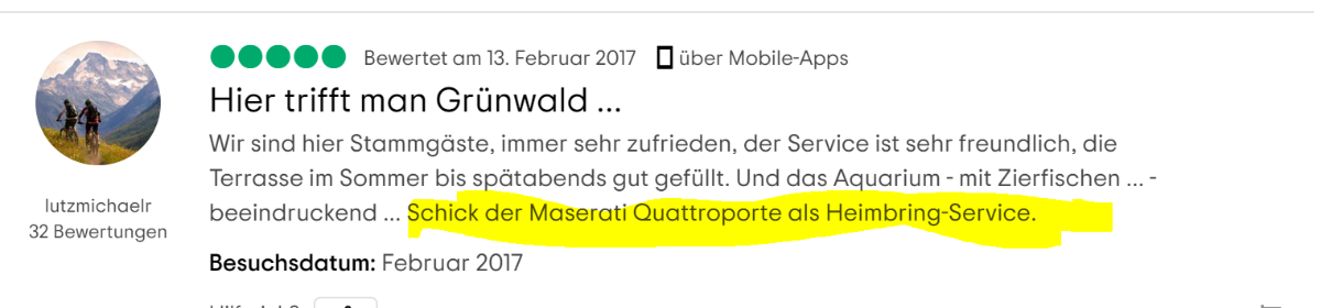 Ich glaube da fahren wir mal zum Essen hin Grünwald ist ja quasi um die Ecke  🍻🥗