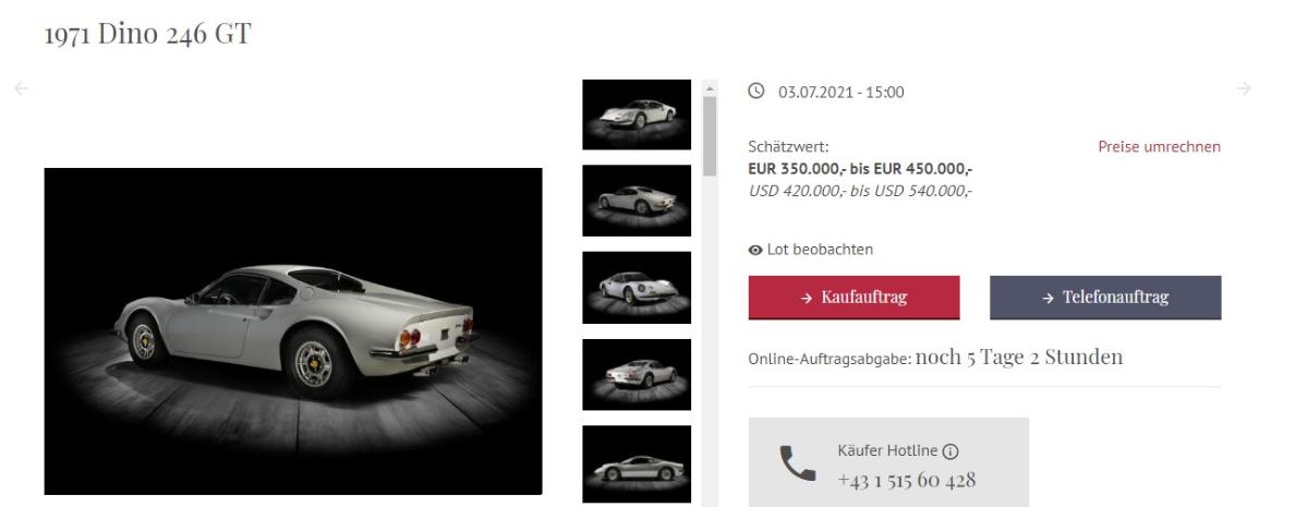 1971 Dino 246 GT - Klassische Fahrzeuge 03.07.2021 - Schätzwert: EUR 350.000 bis EUR 450.000 - Dorotheum