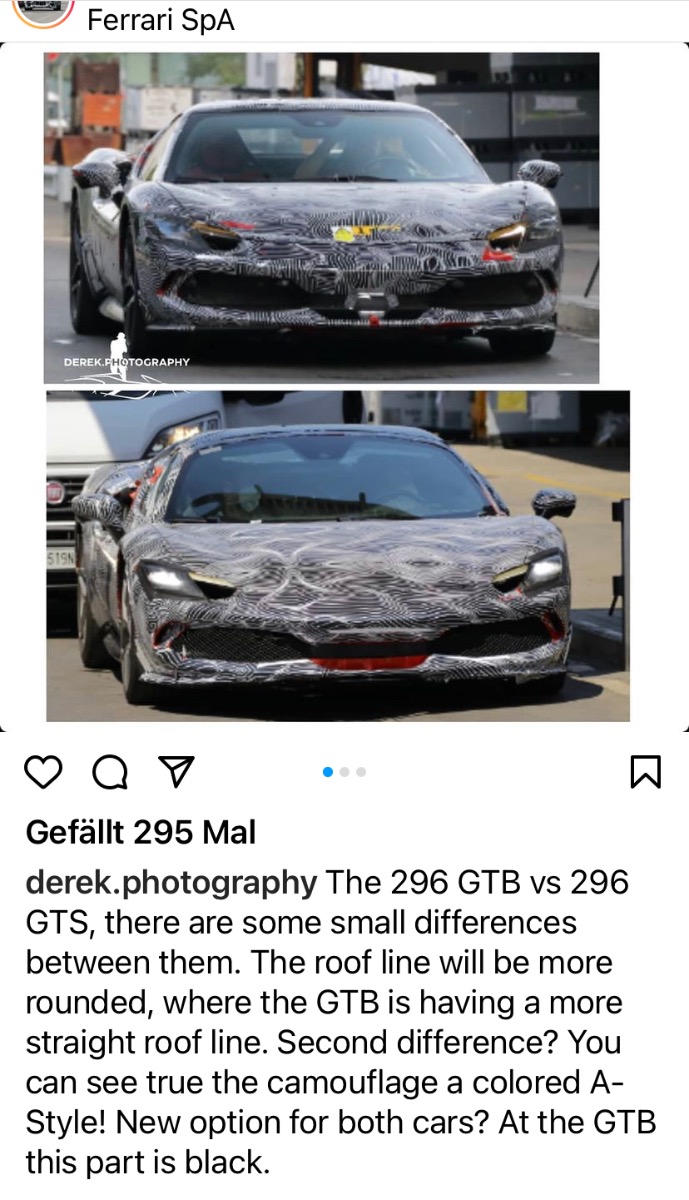 Es wird beim 296 nur einen Targa geben. Unter Targa verstehe ich ein herausnehmbares Dach a la 812 Competizione Aperta. Nun ja, warten wir es einfach ab.