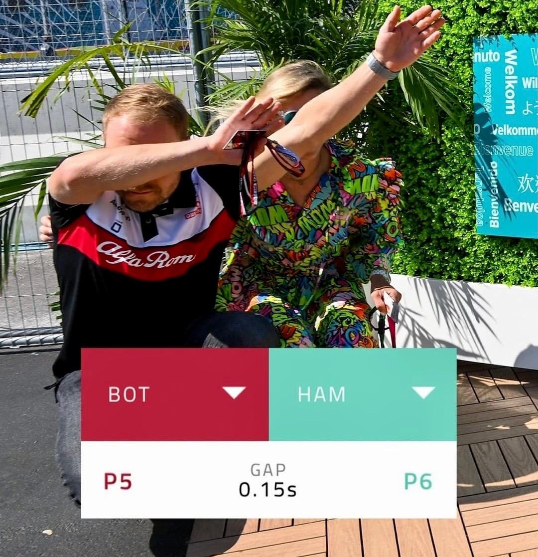 Bottas auf P5 im Qualifying kann erneut ein super Ergebnis verzeichnen finde ich. Seine Schadenfreude gegenüber seinem langjährigen Teamkollegen Lewis Hamilton zeigt er gerne😀….