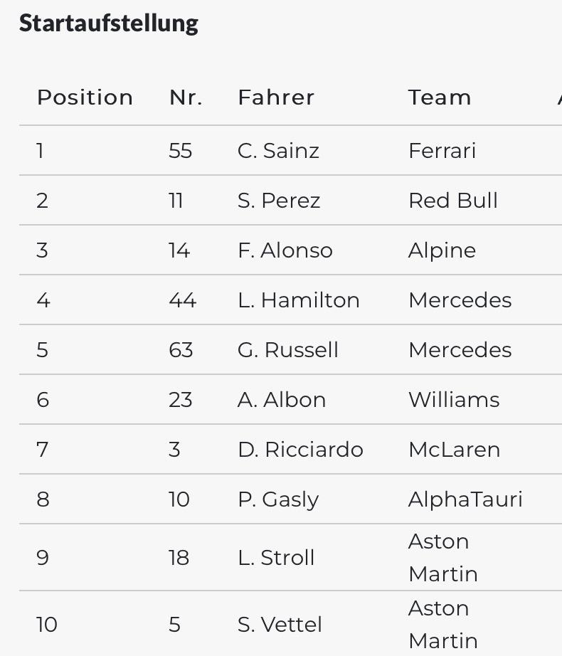 Ich denke sogar das Verstappen trotz Startplatz 15 gewinnen kann. Der RedBull war gestern das mit Abstand schnellste Auto.