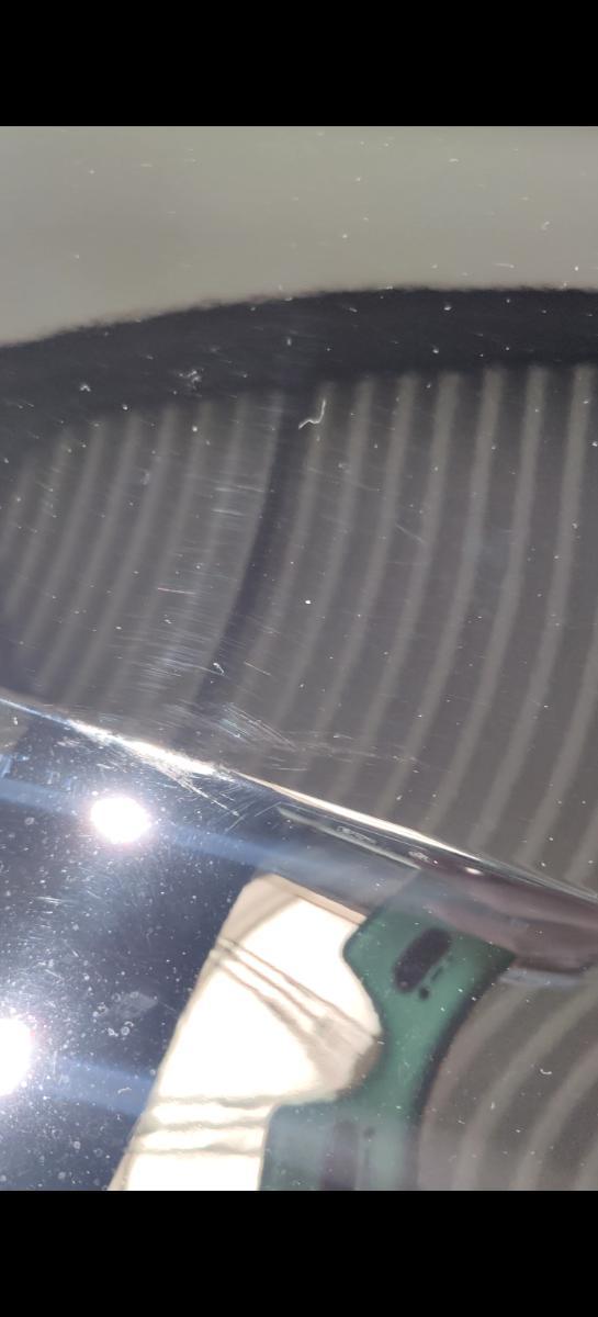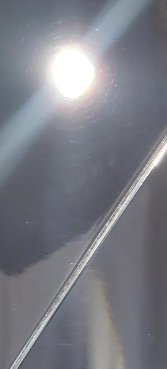 Ich habe dann zig Varianten versucht, bis hin zur reinen Finish Politur mit weichstem Schaumstoffpad welches ich hatte. Es wollte einfach nicht gut werden. Sah besser aus, aber immer noch nicht gut... Hier ein Bild von weichem Pad mit Koch-Chemie Micro Cut. Das ist eine Anti-Hologramm Politur mit gutem Finish. Das erzeugte teils wieder Hologramme. Eine Anti-Hologramm Politur die Hologramme erzeugt - spricht gegen jeden Sachverstand. Egal wie fein die Politur, egal welches Pad - keine Chance.