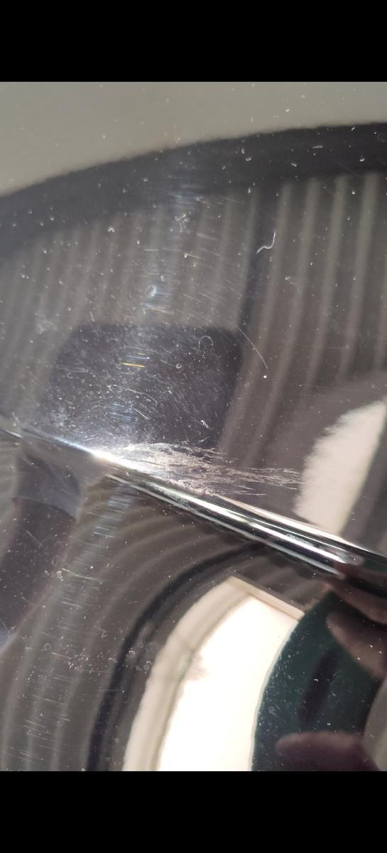 Beachtet nicht den Lichtschein nach links und rechts. Der war real nicht da. Das liegt an meinem doofen Smartphone. Nach oben und nach unten seht ihr die Polierrückstände. Relativ wenig und das war auch das Ziel, denn ich hatte ja nur einen zweiten Gang um das zu entfernen und zu finishen.