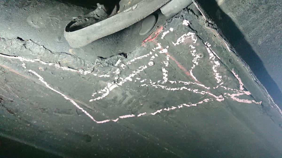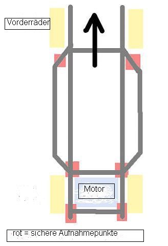Der Diagonalträger läuft spitz zum Falz des Schwellers. Vorn an der Kante geht ein Querträger vermutlich ein Mal unterm Auto durch zur anderen Seite (das konnte ich aber nicht sicher rausfinden). Aber im Bereich der schraffierten Fläche Ists massiv!