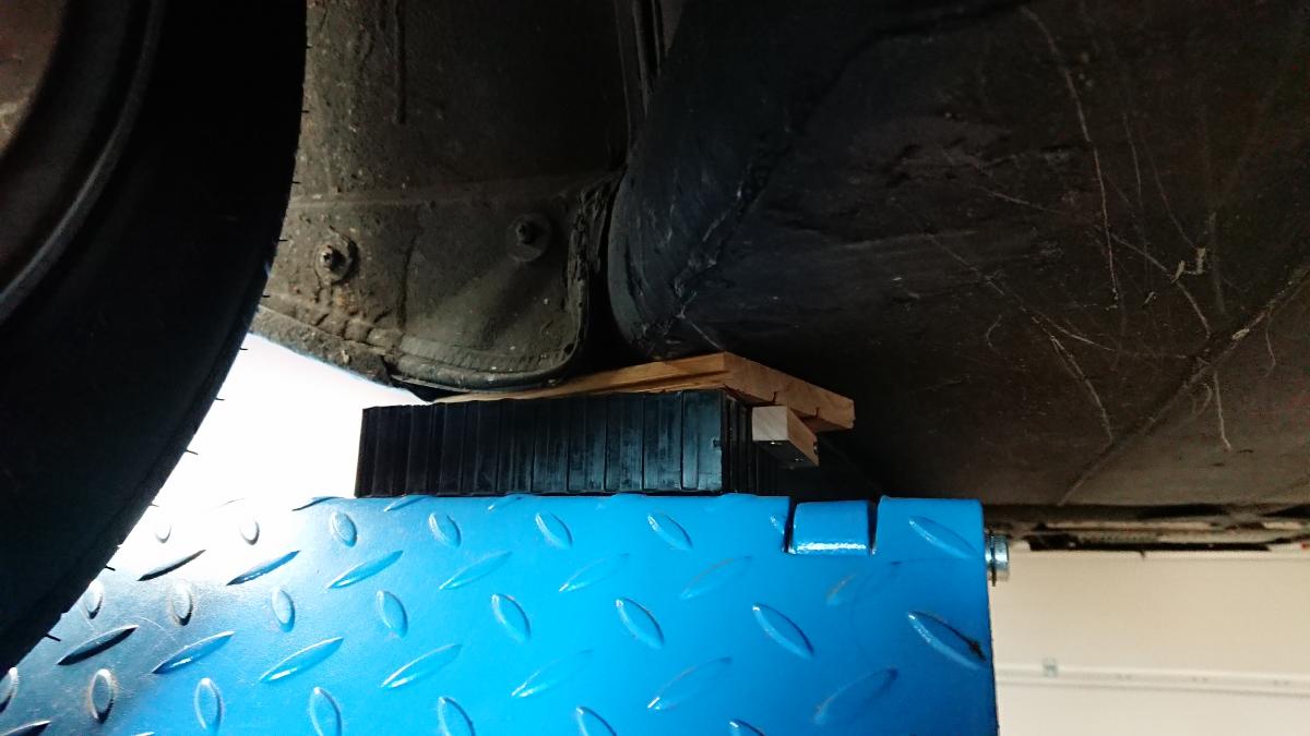 ich hätte an deiner stelle das holz zwischen hebebühne und gummiauflage , um unterbodenschutz und geometrie der aufnahmepunkte zu schonen  zu schonen gestellt !