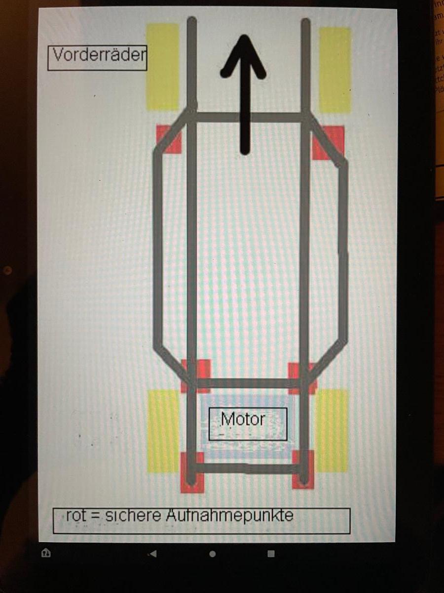 Vorne kann man eigentlich nur an den schräg zum Schweller laufenden Rahmen Träger gehen - aber das ist das Problem der Scherenbühne, da kommt man nicht gut dran...