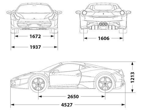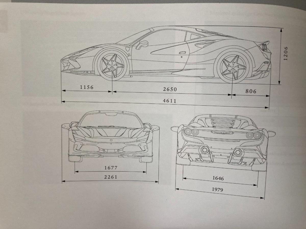 Abmessungen des Ferrari F8 mit Außenspiegeln
