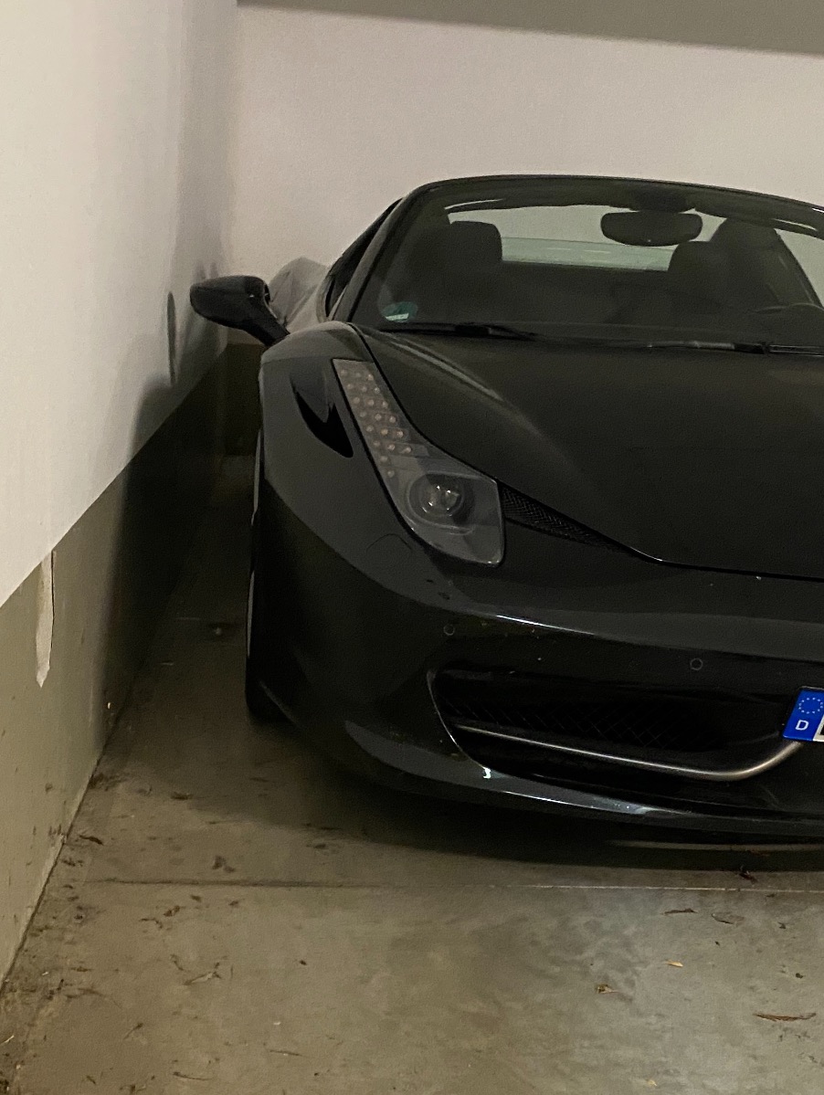 Wie nötig Abstand ist, sieht man daran, dass bei Rückkehr in obige TG jemand sich an meinen 458 gekuschelt hatte. Wie nahe der wohl ohne den Pfeiler herangekommen wäre. :(