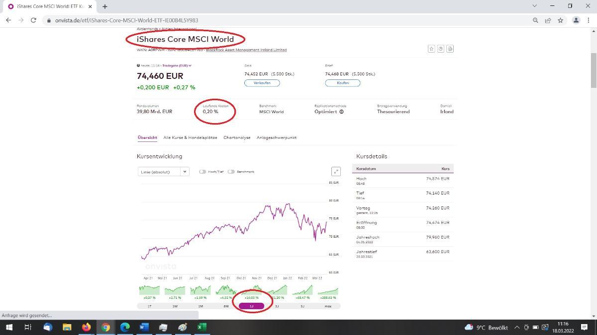 Performance des iShares Core MSCI World auf Jahressicht, sehr gute 15,99% :-))!