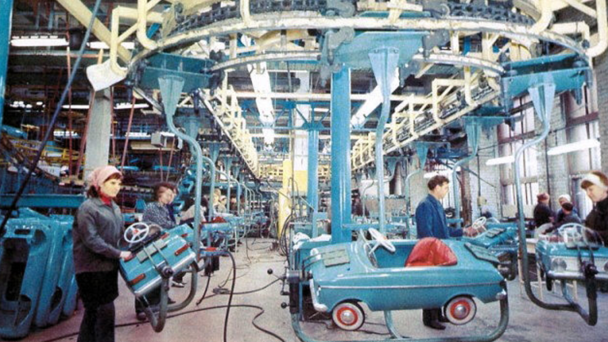 Habe vom hinteren Moskwitsch noch ein Werksfoto, er wurde in Russland mit den Blechabfällen von den 1:1 Modellen zusammengebaut…
