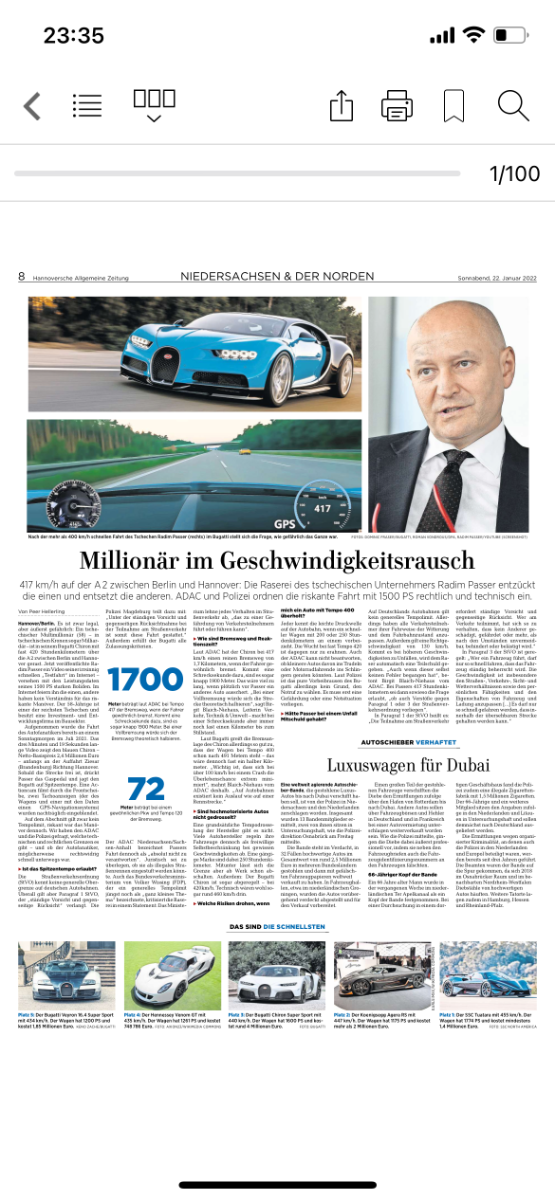 417 km/h mit Bugatti Chiron auf der Autobahn