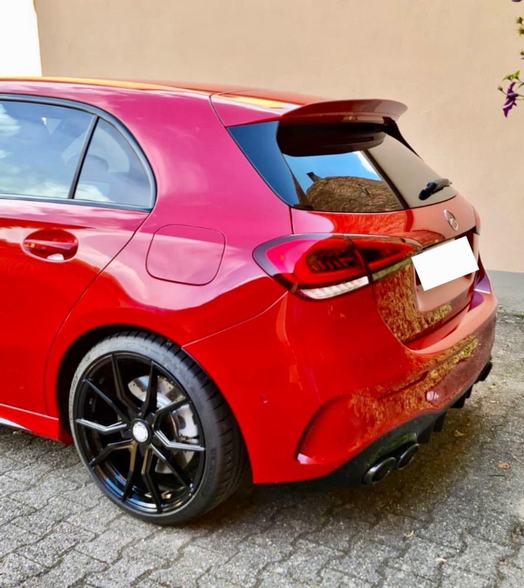 Das Fahrzeug bekam im Nachgang sogar eine Wachsversiegelung mit einem sehr sehr speziellen handgefertigten Ferrari-Wachs, dass eigentlich für einen Ferrari 250 GTO in Kleinserie von nur 15-Stück gefertigt wurde. Da konnte ich glücklicherweise eines ergattern und habe den roten AMG quasi den letzten Feinschliff verpasst. Der sieht jetzt aus wie ein Spiegel. Die Scheiben versiegelte ich gleich mit, da hatte ich auch eine ganz feine Sache ausprobiert. Wunderbar!