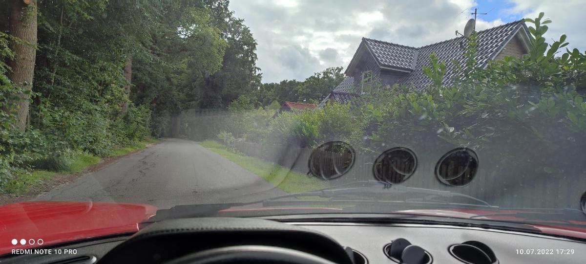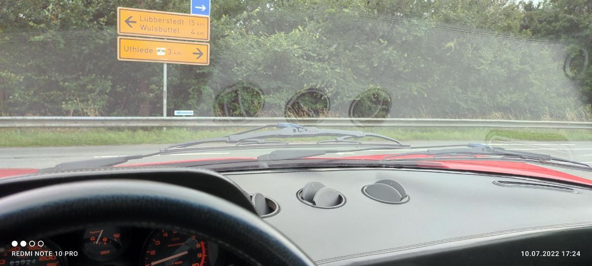 Meine Frau war mit dem 350Z (schwarz) wiedermal an einem Sportfahrtraining, unter anderem auch auf der bewässerten Rutschpiste. Das da verwendete Wasser scheint extrem Kalkhaltig zu sein, zusammen mit strahlendem Sonnenschein sah das Auto am Abend übel aus, weisse Kalkflecken wohin das Auge sieht.
