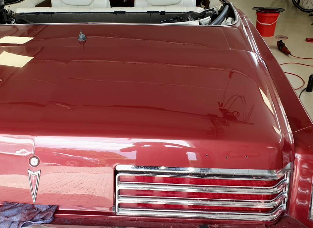 Linke Hälfte der Motorhaube mit Nassschliff und dann das ganze Auto
