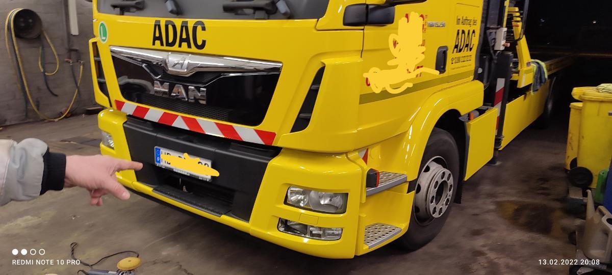 Aufbereitung ( sorry,neudeutsch"Detailing") geht auch in groß. Dieses Wochenende während der Bereitschaft "Mal eben" Lkw lackiert und poliert.