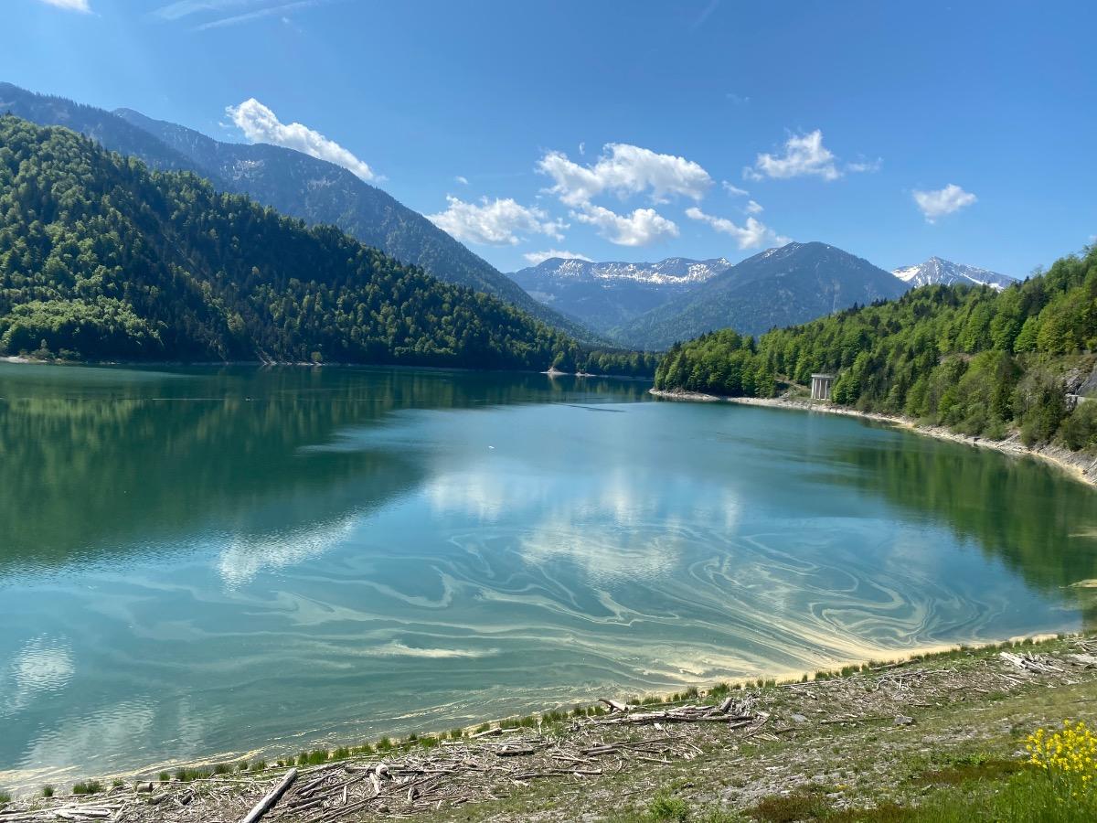 Heute Sylvensteinsee - Bad Tölz - Ebersberger Alm super zum Essen und danach über die Autobahn heim 🏎🏎