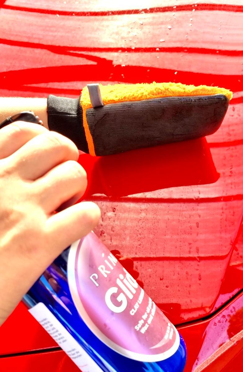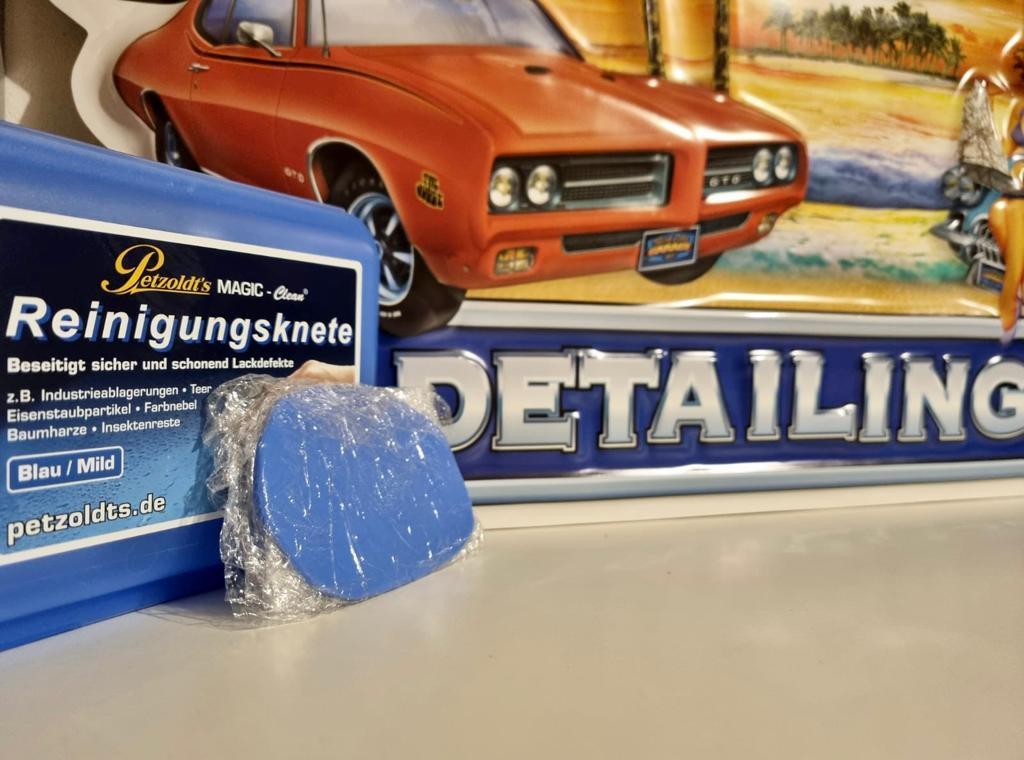 Mittlerweile bietet der Autopflegemarkt Lackknete in diversen Stufen unterschiedlicher Abrassivität an. Darüberhinaus hat sich auch die Form der Knete weiterentwickelt. So werden für größere Flächen Knethandschuhe, Pucks und sogar Knettücher angeboten. Wichtig ist immer ein gutes Gleitmittel in Form von Claylube zu nutzen. Hier ist mehr in der Tat mehr - die Knete darf unter keinen Umständen trocken über den Lack geschoben werden sondern muss immer schön gleiten. Sonst sind größere Defekte geradezu vorprogrammiert. Allerdings vertragen sich nicht immer Knete und Claylube gut miteinander. Die Knete kann von zu aggressivem Claylube angelöst werden und beginn schließlich zu bröseln bzw. sich in ihre Bestandteile zu zerlegen. Hier sollte man schauen, dass die Kombination Knete + Claylube einfach gut miteinander harmoniert. Es gibt viele gut funktionierende Kombinationen, hier meine von heute: