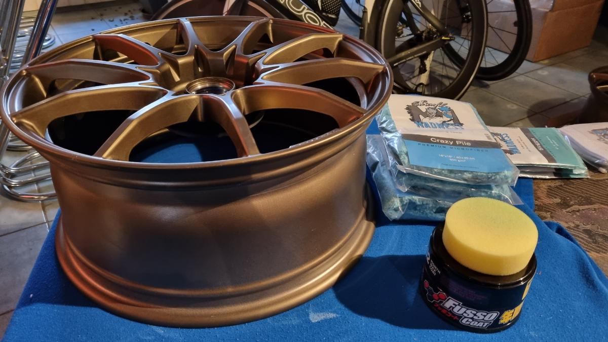 Ergebnisse sehen soweit gut aus. Die Felgen haben ihren matten Look behalten und fühlen sich dabei noch richtig schön glatt an. Bin gespannt, wie es dann mit Reifen am Auto aussieht und wie die Behandlung bei Nässe und Schmutz so wirkt.