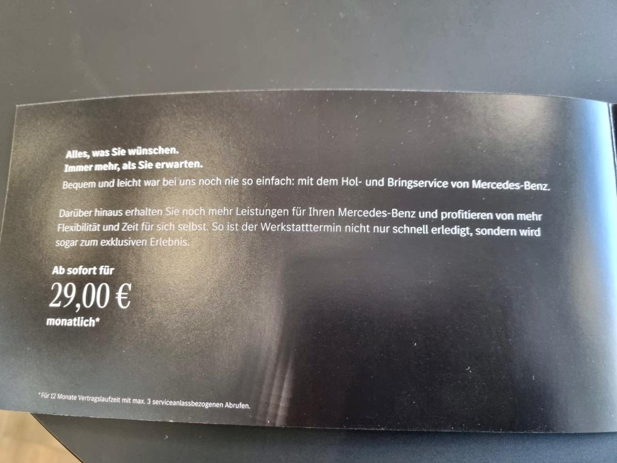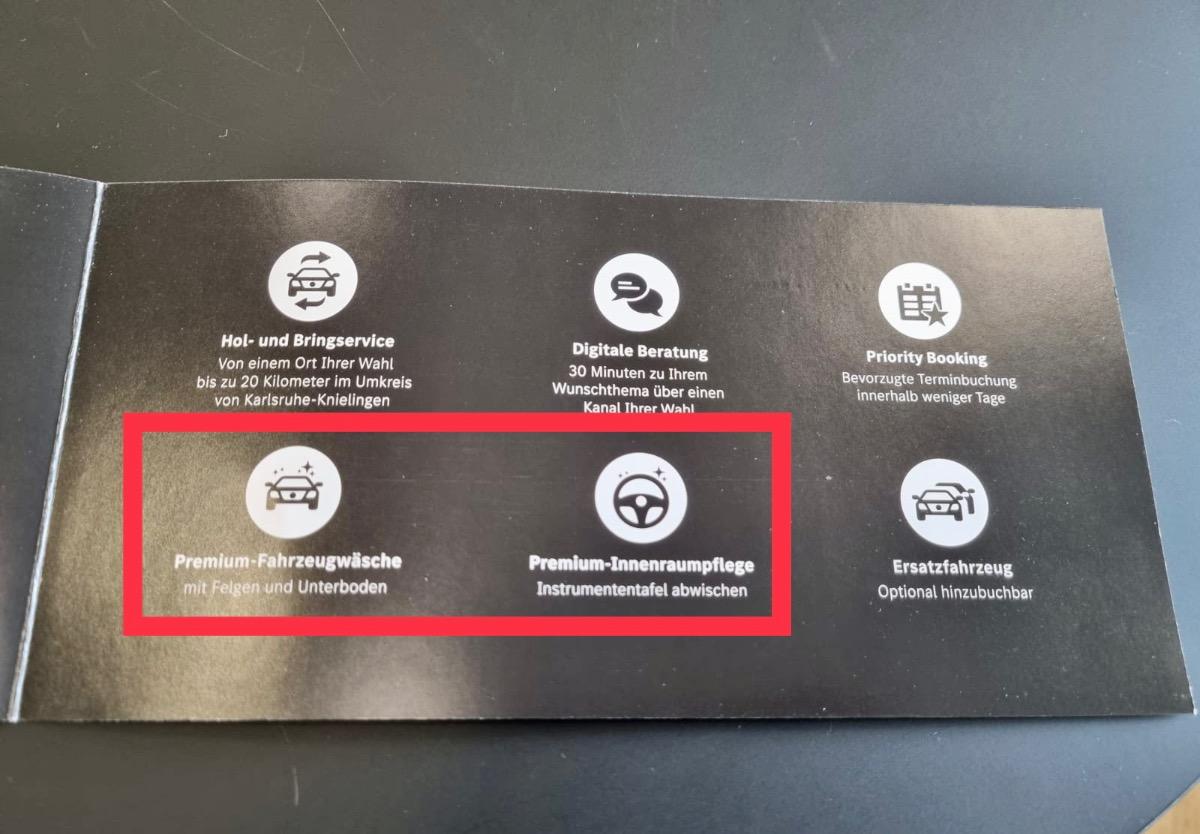Konkret geht es um ein „Care-Paket“, dass EUR 29,-  pro Monat kosten soll und per Vertrag für 12-Monate abgeschlossen wird. Wenn der Kunde ein Auto zum Service bringen möchte, bekommt er u.a. das Fahrzeug im Umkreis von 20 Km abgeholt + gebracht und erhält eine Premium-Reinigung seines Fahrzeuges. Gewaschen wird nicht per Hand oder nur per HDR, sondern leider klassisch in der Waschanlage. Dieser Waschprozess wird beworben mit „Premium-Fahrzeugwäsche“ inkl. Felgen- und Unterbodenwäsche. Schmunzeln musste ich über die „Premium-Innenraumpflege“, die aus Instrumententafel abwischen besteht.  Also einmal mit dem Premium-Mikrofasertuch das Display/Bildschirm vorne abwischen, so verstehe ich das zumindest. Bei jährlichen Premiumkosten von round about EUR 360,- und einer Begrenzung auf 3x Nutzen dieses Services kostet ein premiumverdächtiger Durchgang EUR 120,-. Für eine Fahrt in die Waschanlage und einmal Touchscreen reinigen. Vielleicht schlägt aber auch der Hol- und Bring-Service kräftig zu buche. Autsch. Schade…