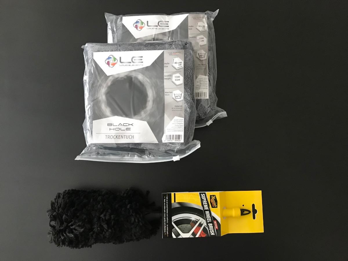 Ich habe heute (die Sachen kamen erst gestern) nur mal testweise mit dem ersten, also dem Innenraumreiniger und dem Applikatorschwämmchen angefangen und anschließend mit etwas Wasser und Tuch nachgereinigt.