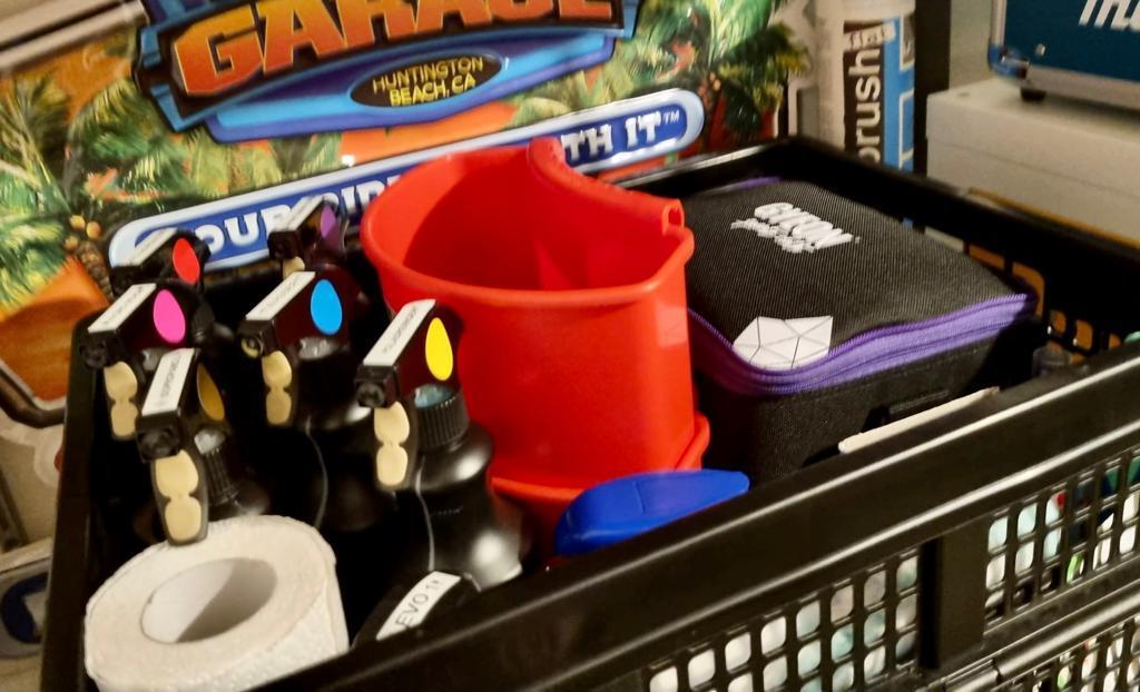 Für unterwegs wird eine kleine Detailingkiste miteingepackt, damit ich unterwegs auf alle Eventualitäten gut vorbereitet bin (Entfernen von Trafficfilm, Vogelkot, Bienenkot, besonders schlimmen Insektenresten, Teer etc.). In der Kiste (ca. 60x40cm) sind: