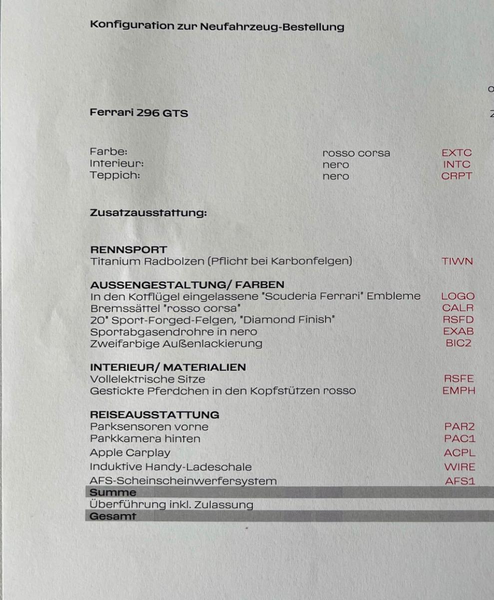 Heute den bereits vor einem Jahr bestellten 296 GTS  beim Ferrari-Händler meines Vertrauens konfiguriert: