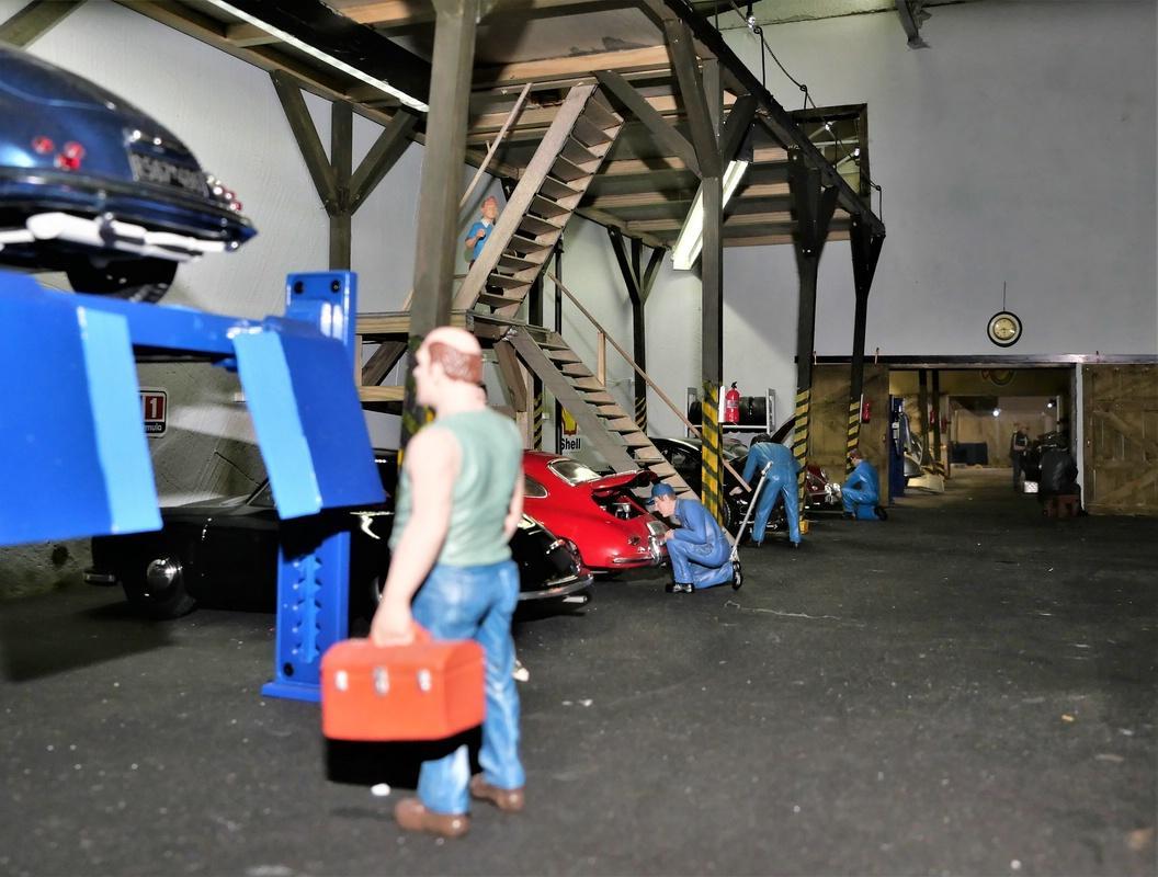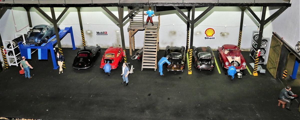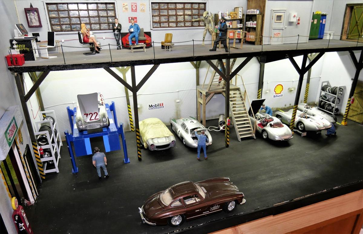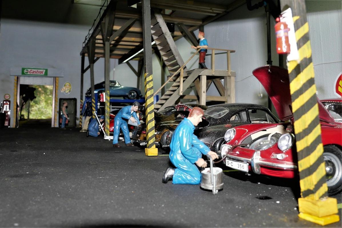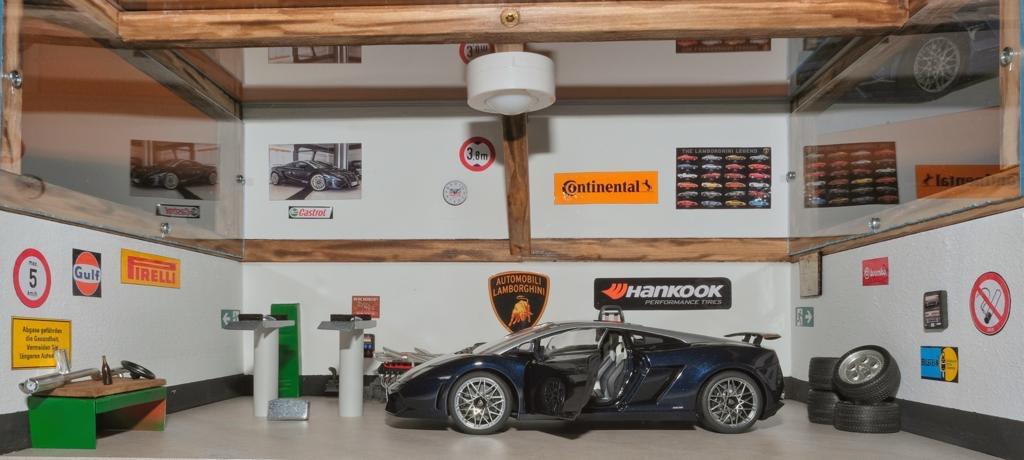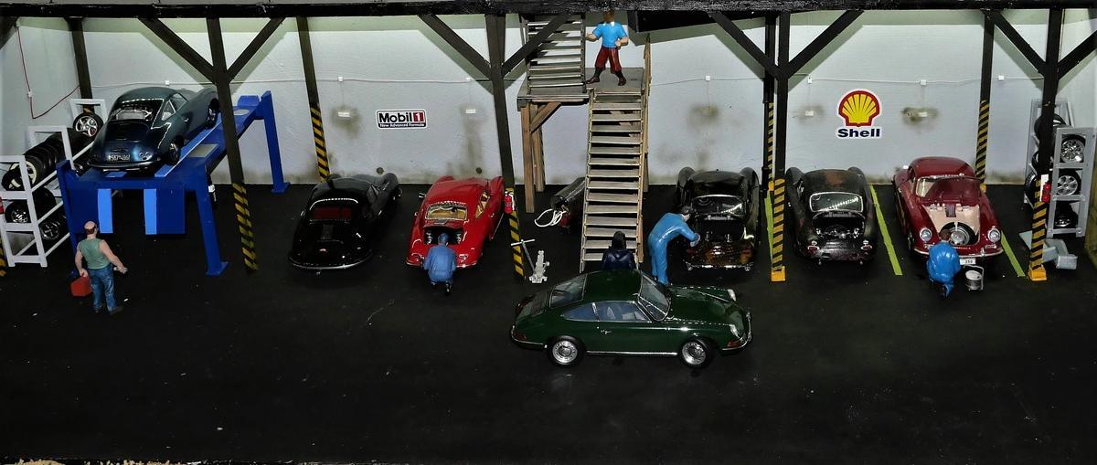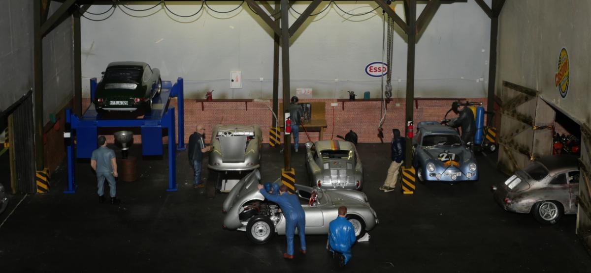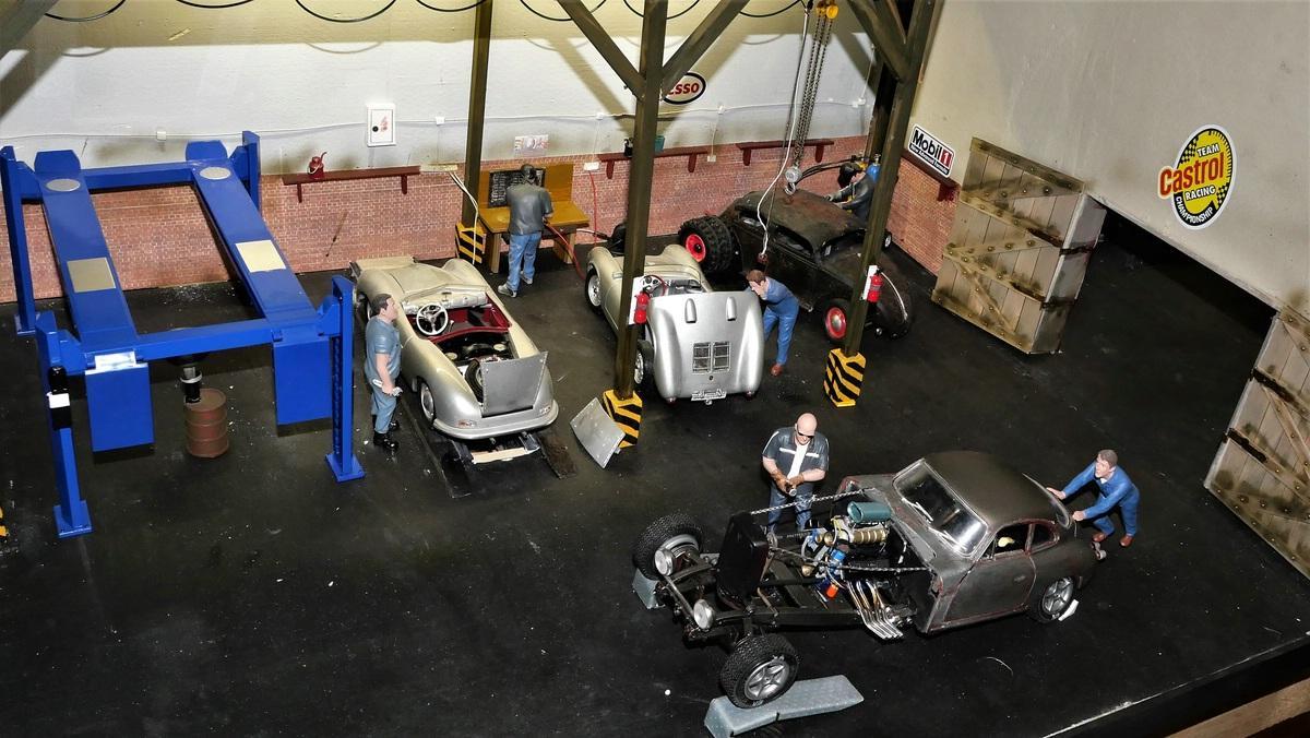 Werkstatt-Diorama zur Präsentation verschiedener 1:18-Modelle