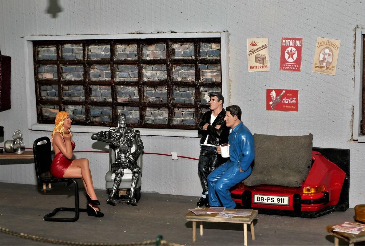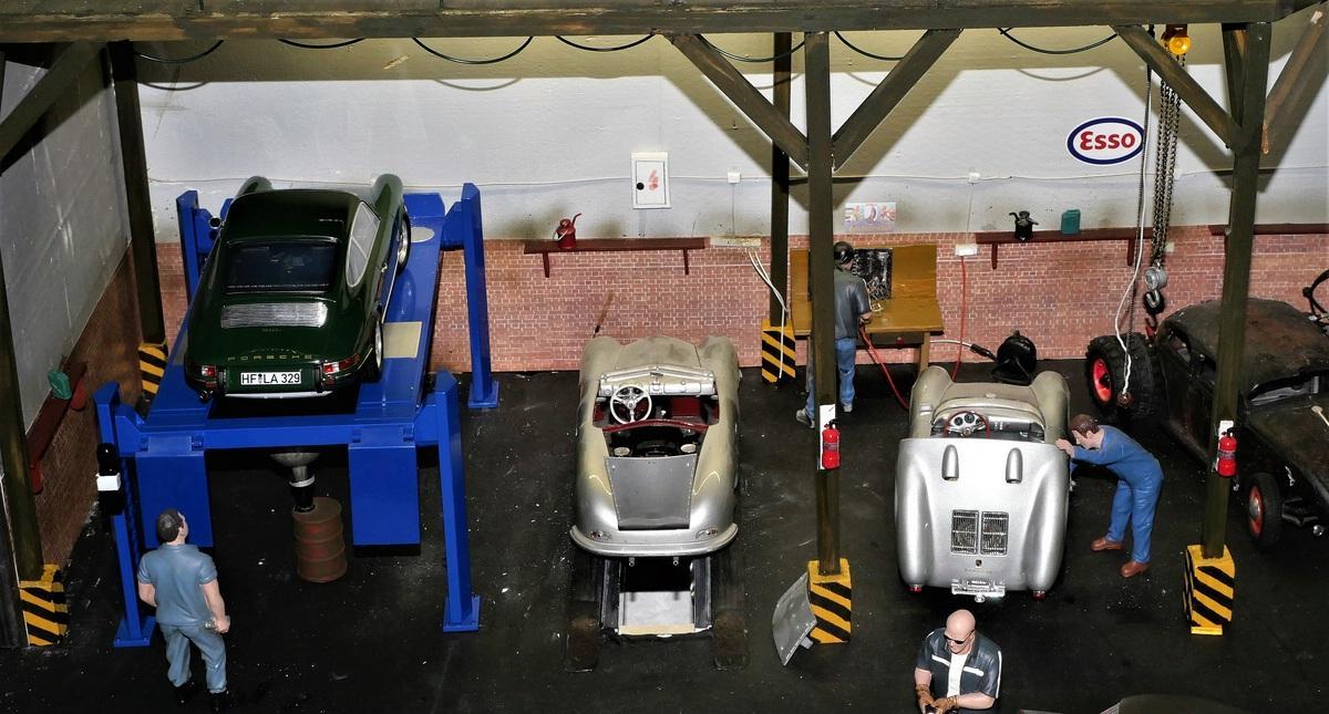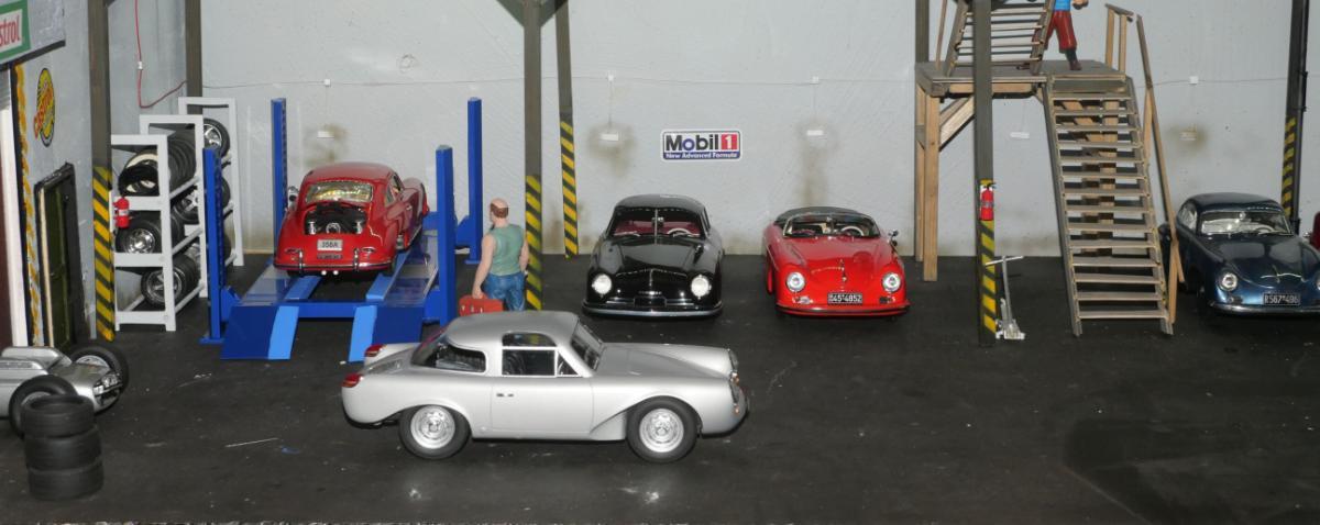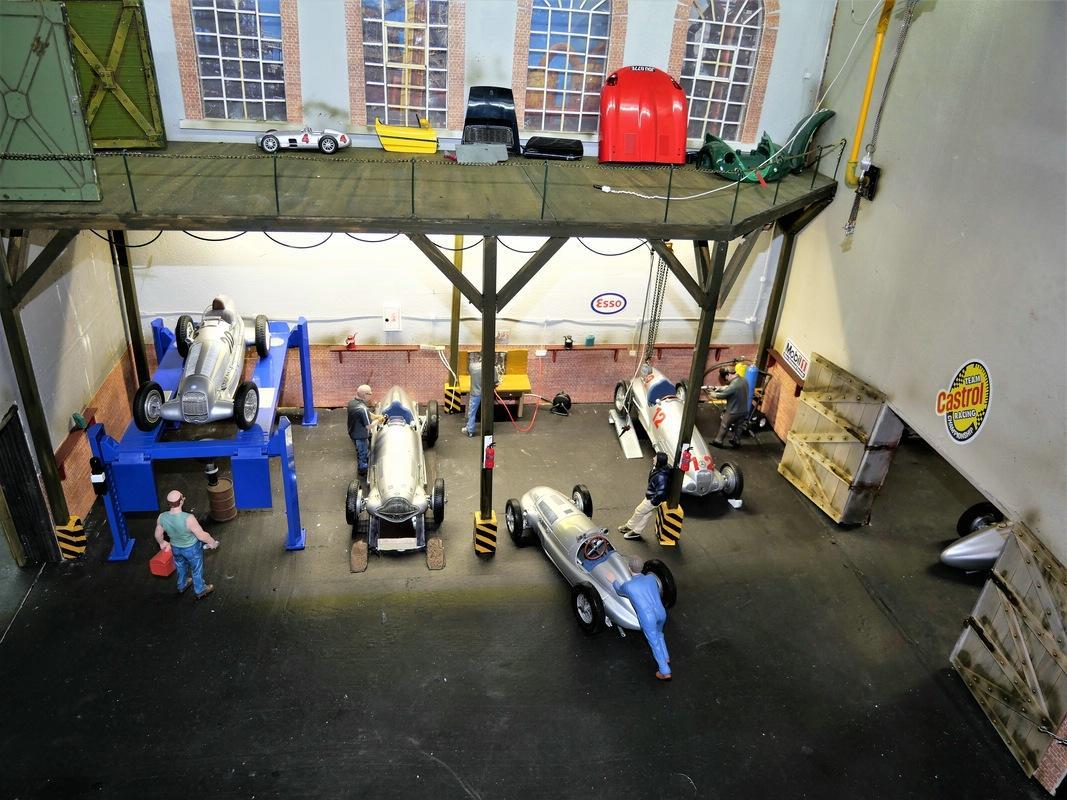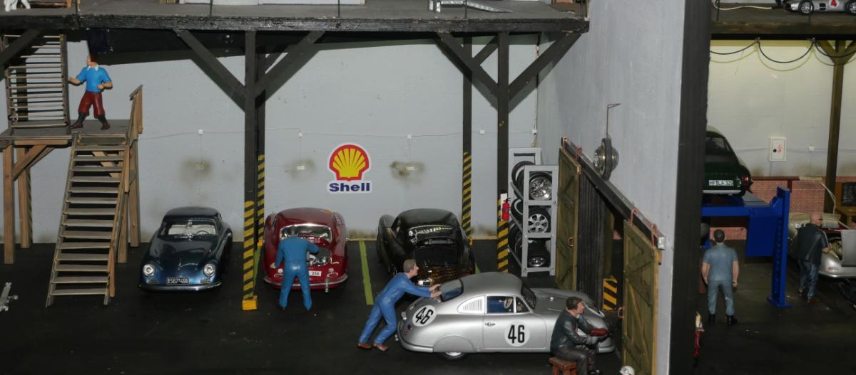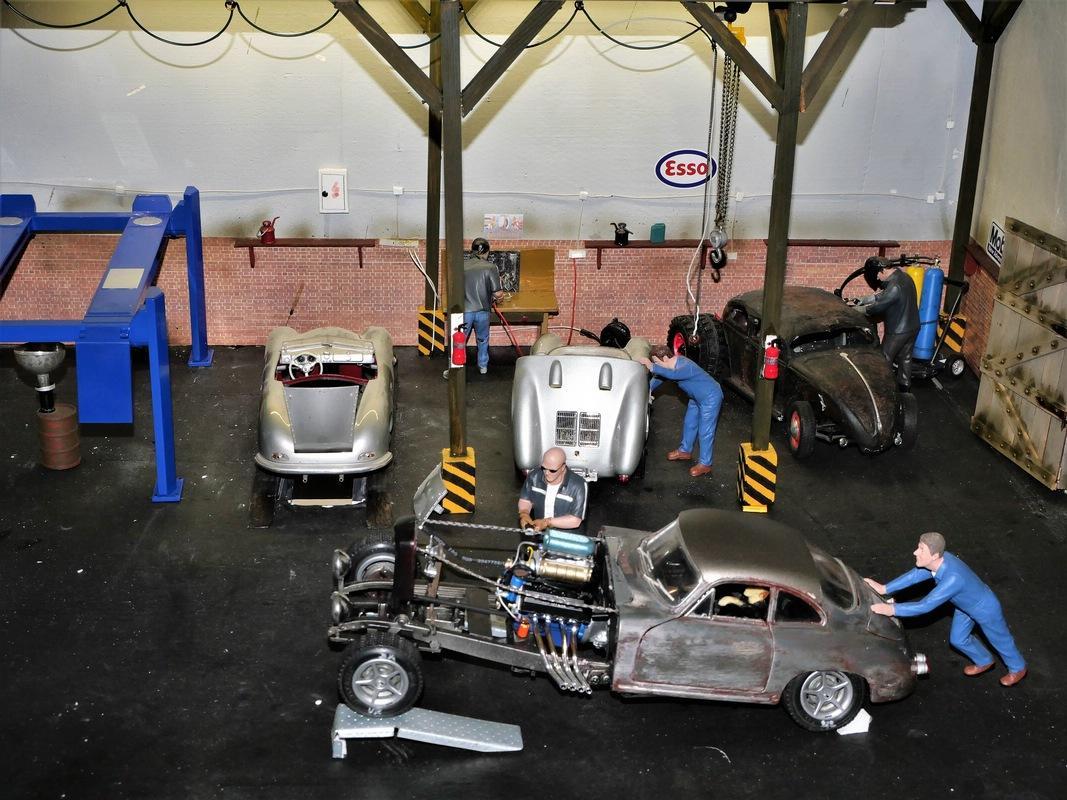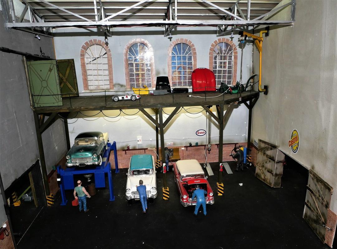 Werkstatt-Diorama zur Präsentation verschiedener 1:18-Modelle