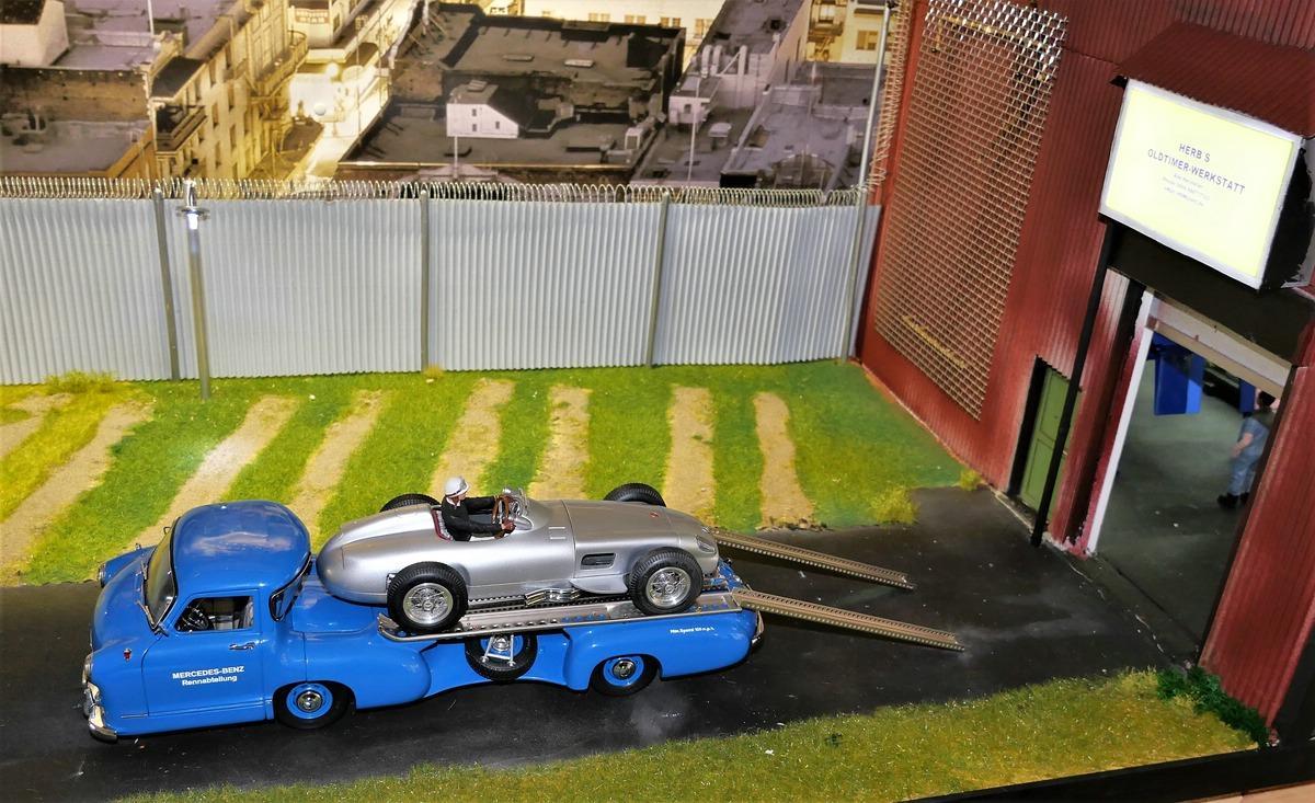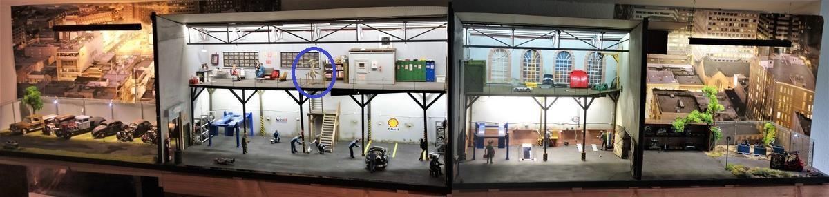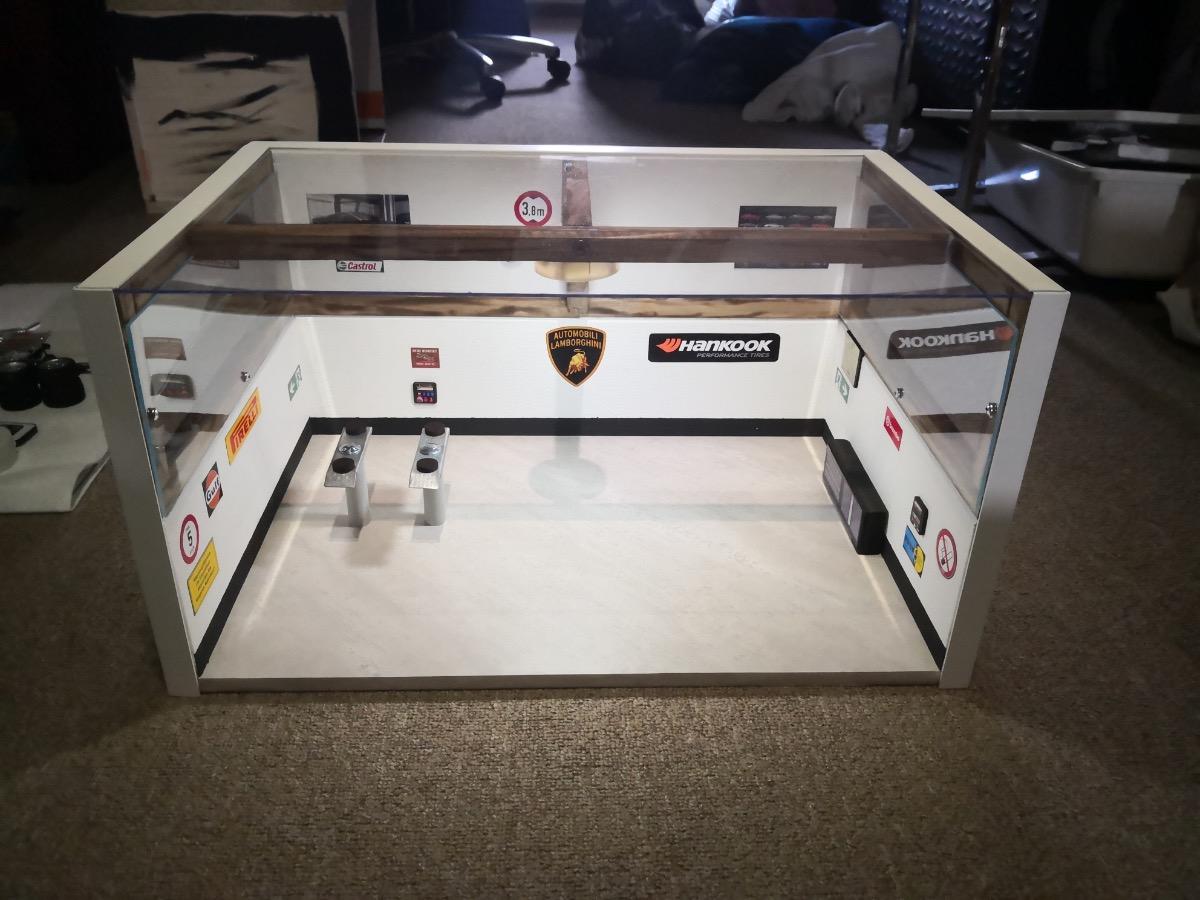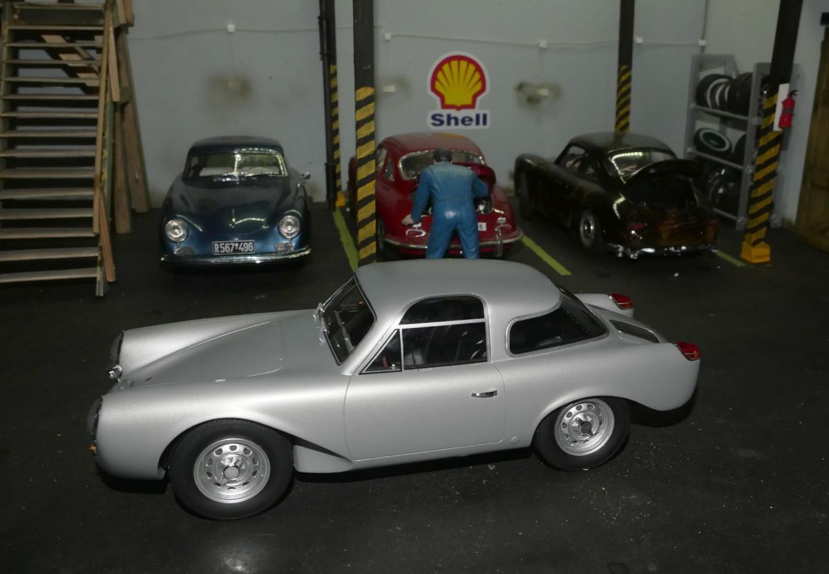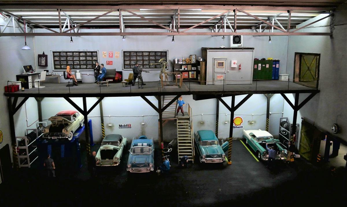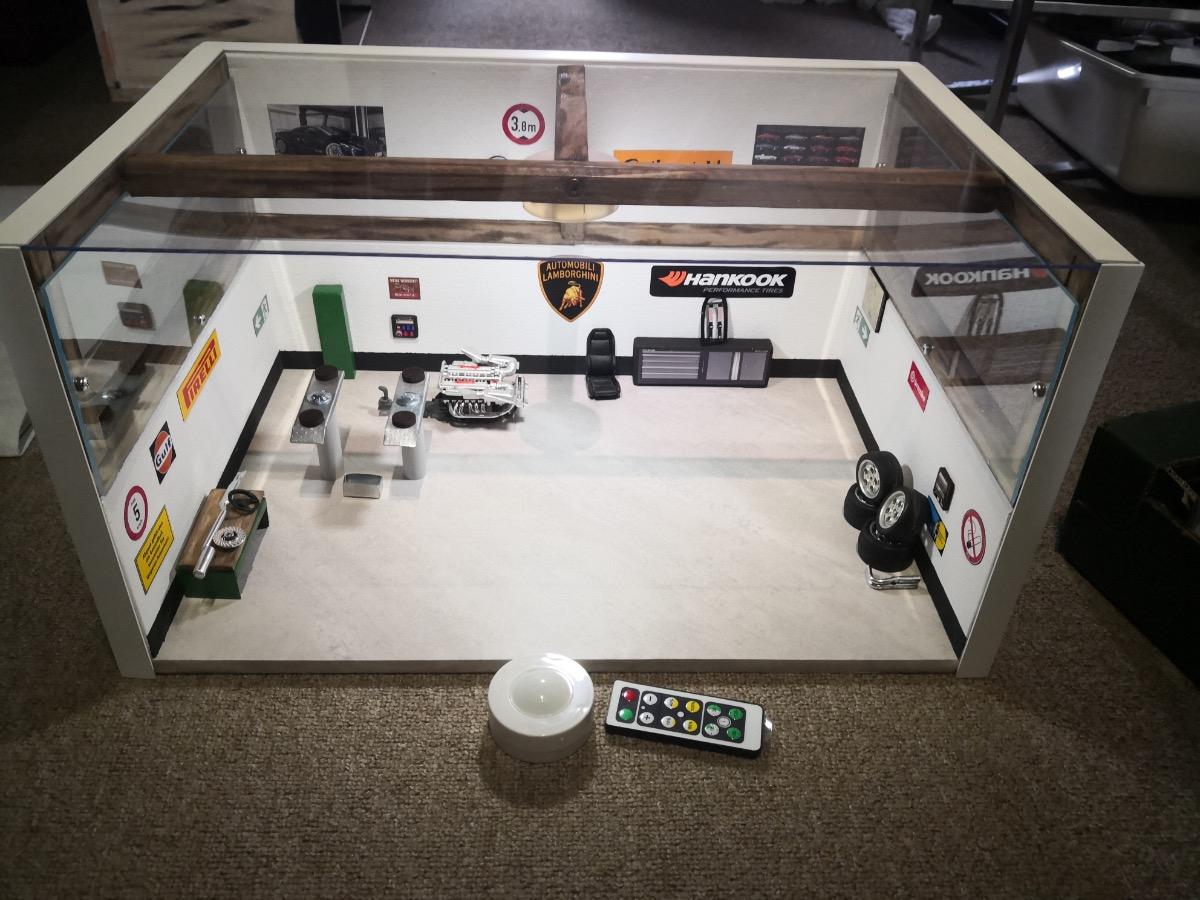 Werkstatt-Diorama zur Präsentation verschiedener 1:18-Modelle