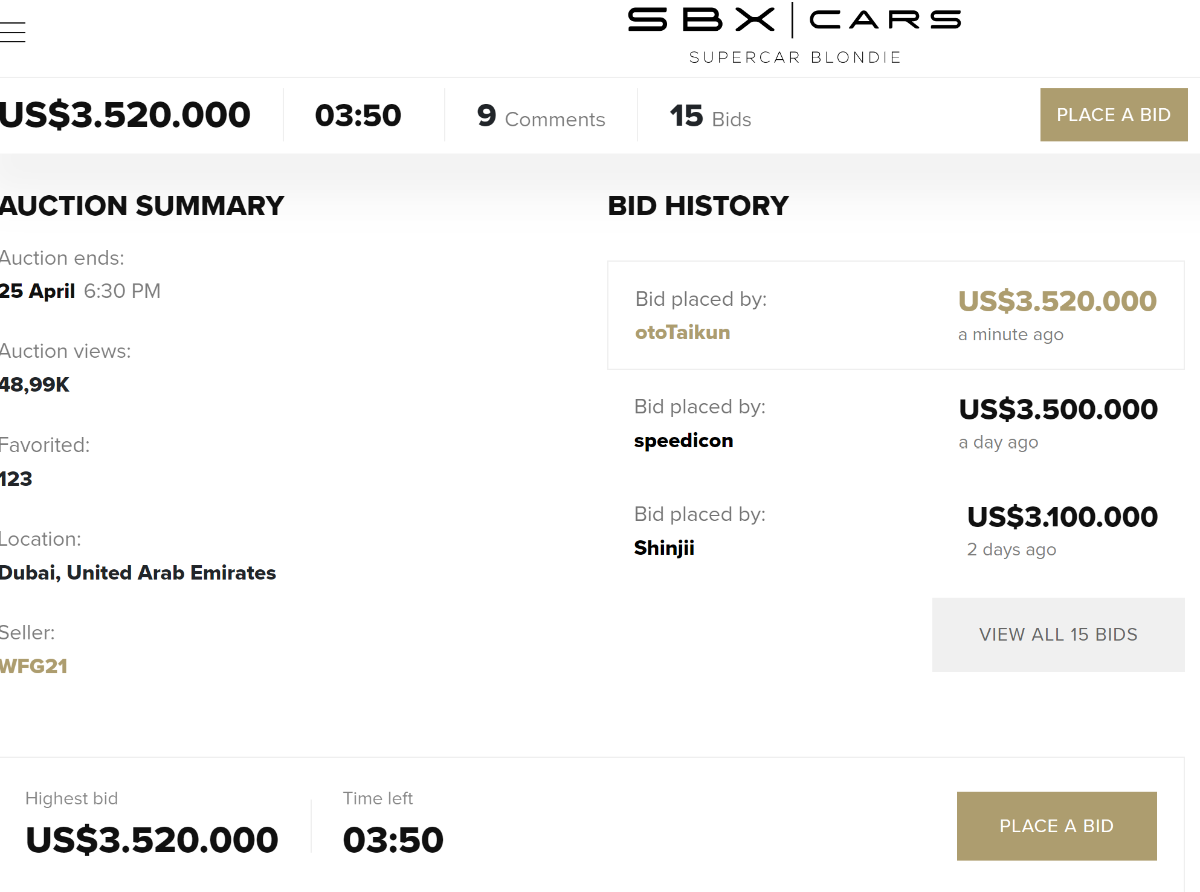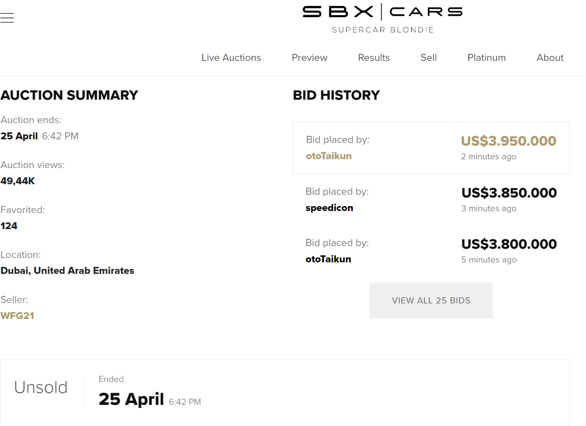Man findet im Netz als LP die Angabe 2,75 Mio € ohne Steuern in D, dann bin ich mal davon ausgegangen das man mit Extras irgendwo um die 3 Mio € liegen wird. Da das Auto in der Versteigerung ja aber in Dollar gehandelt wird und die 3.95 Mio $ stand heute 3,65 Mio € entsprechen komme ich da nicht auf 1,7 Mio Gewinn für den Verkäufer 🤔