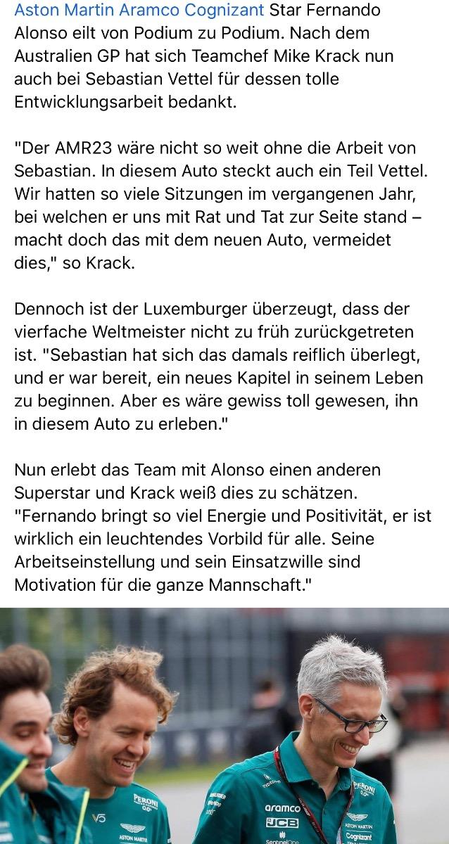Ich freue mich für Alonso, dass er bei der Musik ist mit dem Aston Martin - ob Vettel was damit zu tun hat oder nicht, sei‘s drum ;)