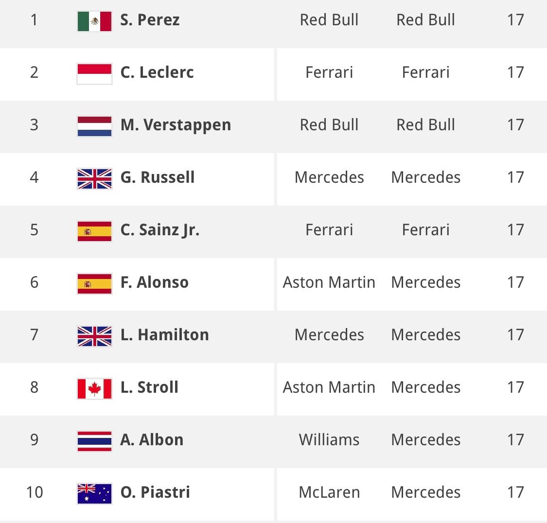 Leclerc sichert sich die Pole auch für das Sprintrennen heute Mittag und verweist beide RedBull auf die Plätze. Auf eine Runde gesehen scheint Ferrari das schnellere Auto zu sein an diesem Wochenende. Mal sehen ob Ferrari das auch im Rennen halten kann. Begeistert war ich von Albon, der eine richtig gute Runde hinlegte und sich vor beiden Aston Martins auf P7 qualifizierte. Hier die Ergebnisse des SQ: