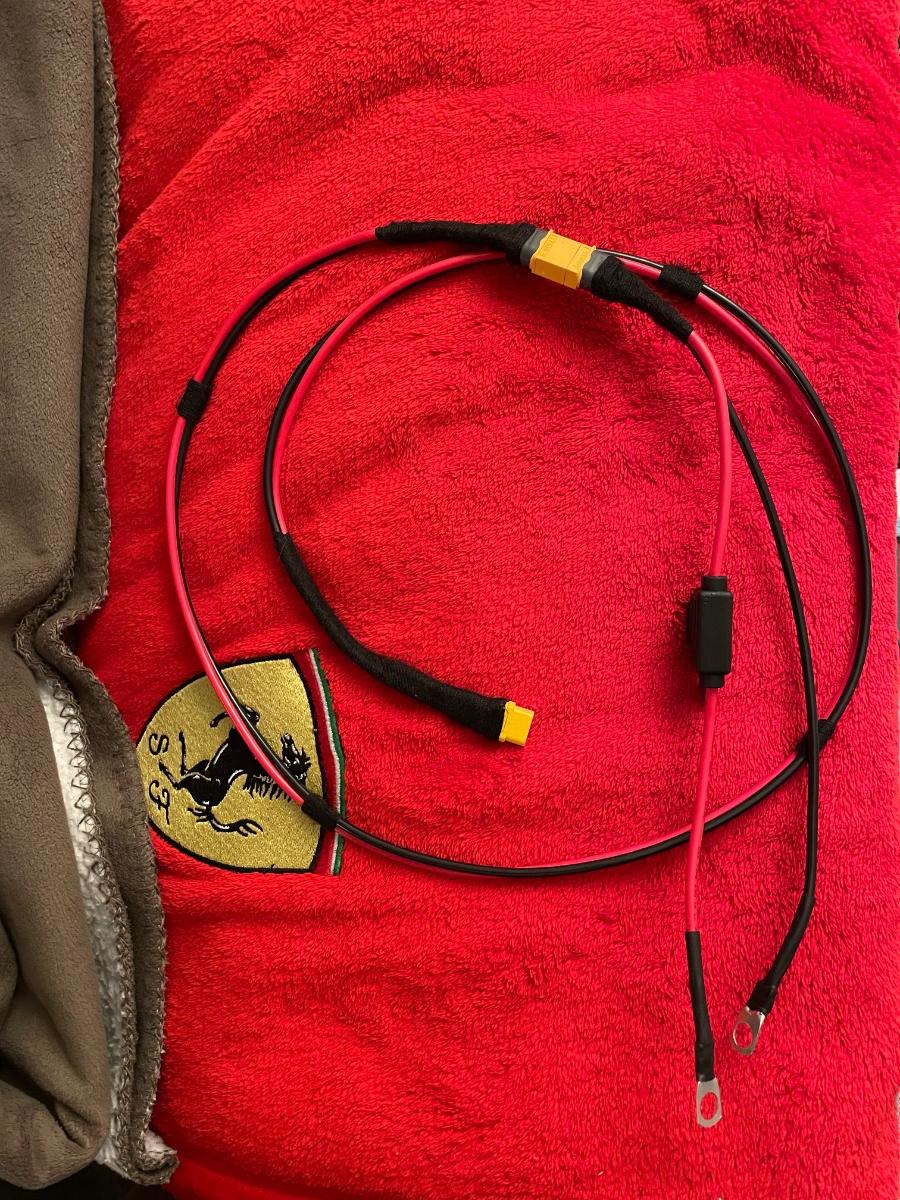 So, ich habe jetzt mal selber ein passendes Kabel für das CTEK CS free gebastelt, da es von CTEK kein passendes für den festen Einbau gibt. Das 20A Kabel lässt sich fest an die Batterie des Fahrzeugs schrauben und in einen leicht erreichbaren Bereich legen. Das cs free wird dann bei Bedarf mit dem anderen Kabel einfach angeschlossen.