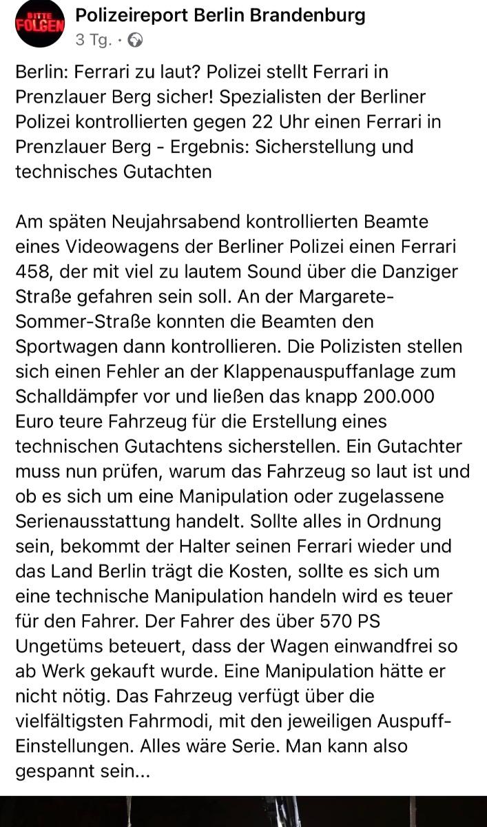 Ferrari 458 Neujahr in Berlin stillgelegt