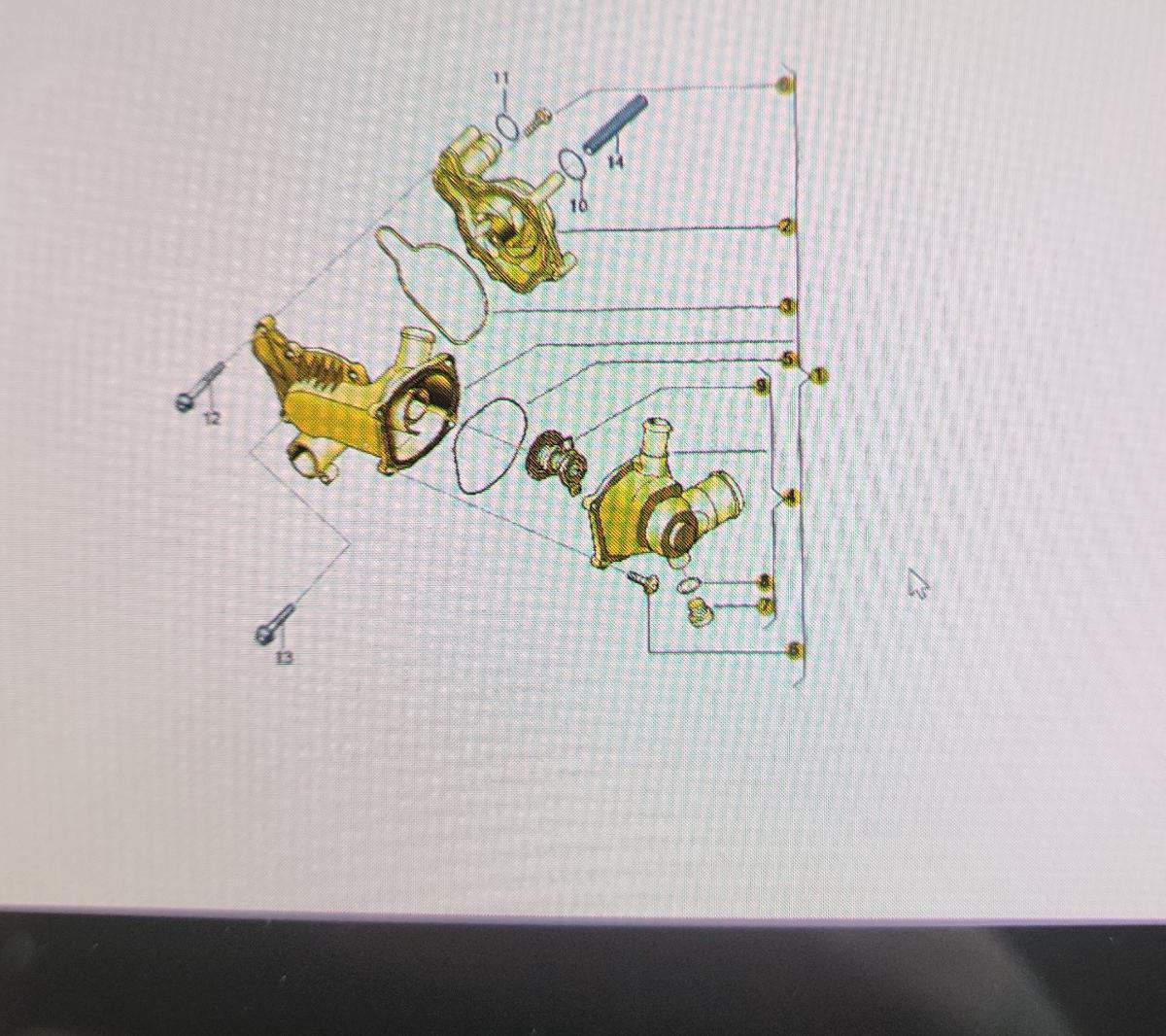 Ich denke schon das die Werte stimmen.Wie er schreibt war im letzten Sommer alles Ok.Wie man hier sieht sitzt das Flügelrad der WAPU auf einer Welle ( Nummer 14 ) die mit dem Motor verbunden ist.Der VAG Konzern hatte ja viele Probleme mit dem Öldruck weil die 6-Kantwelle der Ölpumpe die ja auch mit dem Motor verbunden war verschliss.Wer weiß ob so ein ähnliches Problem nicht auch bei der WAPU vorhanden ist.