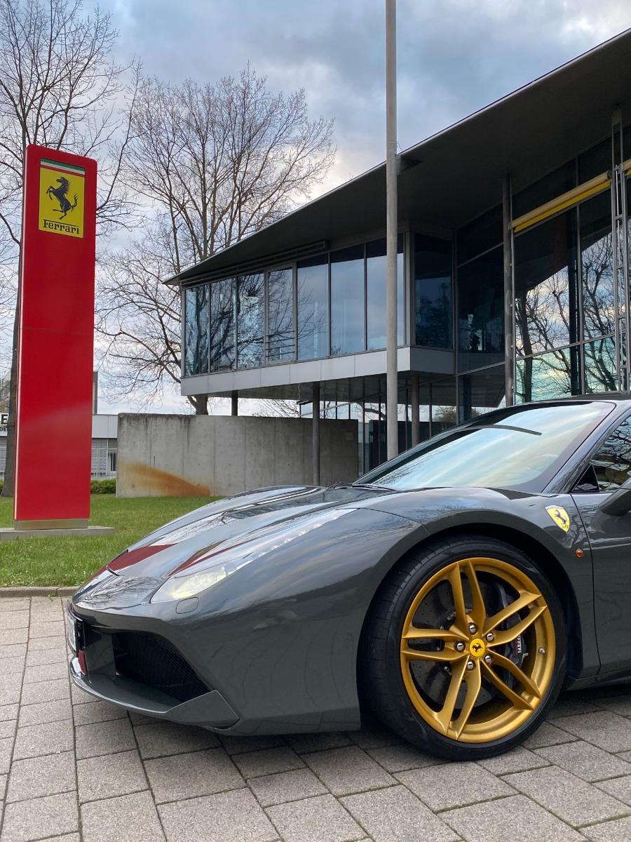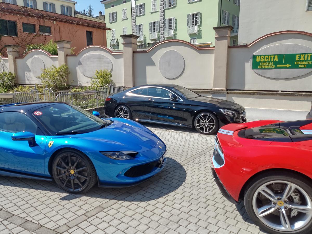 Mangels Ferrari vor Ort, konnte ich Dank dem ortsansässigen Ferrarihändler mit dessen Vorführer/Werkstattersatzfahrzeug doch noch mit adäquaten Untersatz zum Abendessen erscheinen.