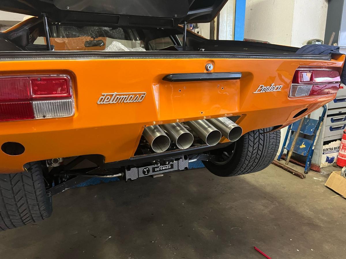 Ich geh jetzt mal davon aus, dass das Ami-Stoßstangenteil sowieso nicht mehr ans Auto kommt und somit die Endrohre gut sichtbar sind. Den Krümmer hast Du doch noch so gelassen, oder? Für einen Auspuffbauer ist es doch eine Kleinigkeit hier einfach einen Endtopf bzw. 2 Endtöpfe zu bauen, die das Geräusch etwas reduzieren und trotzdem die Abgase aus zwei dicken Rohre ins Freie entlassen. Das finde ich persönlich einfach viel stimmiger zu so einem wilden Auto. Es fahren doch einige Panteras mit coolen Auspufflösungen rum.