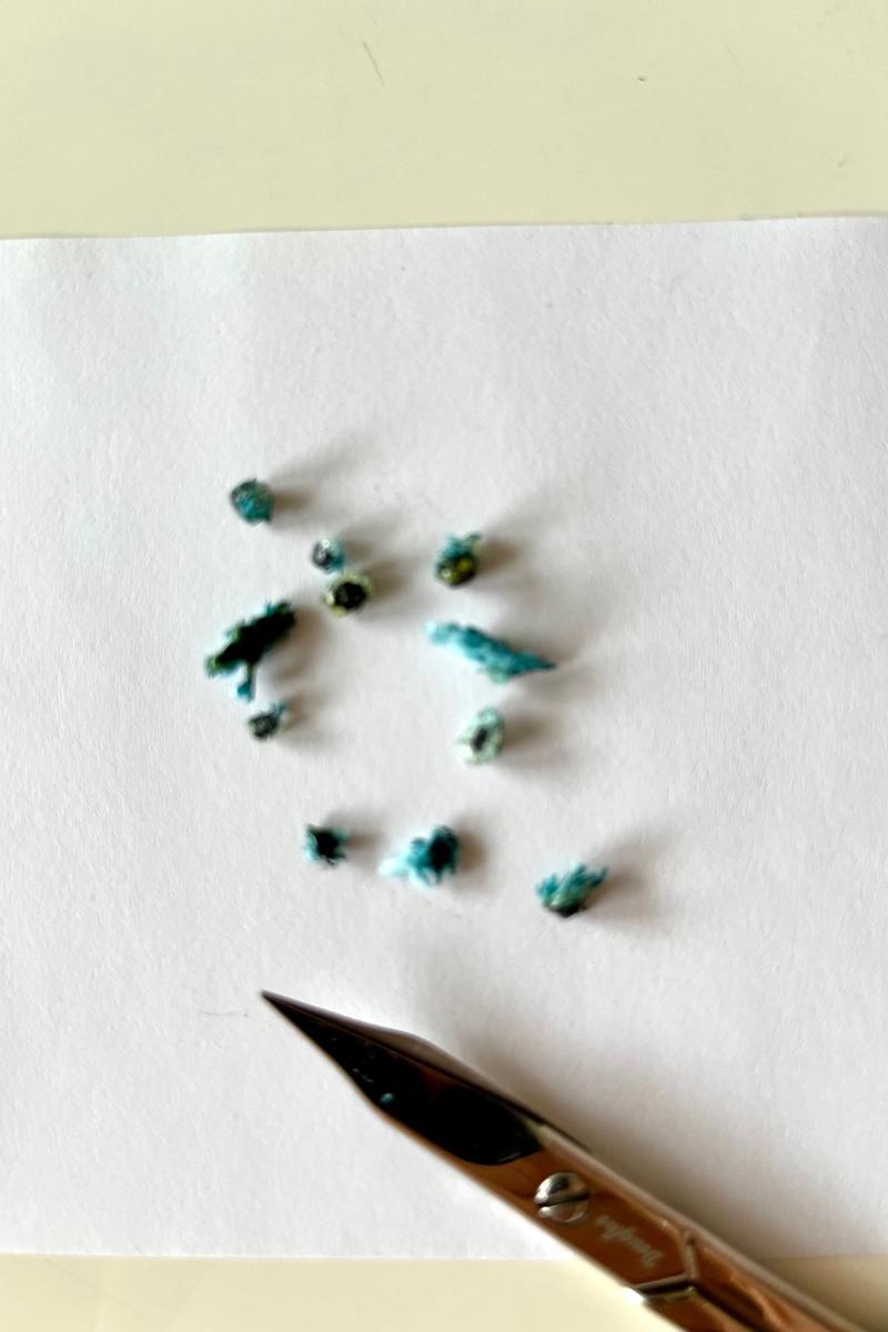Diese Knötchen waren bei mir unten im Tuch, nicht an den Spitzen der Fasern.