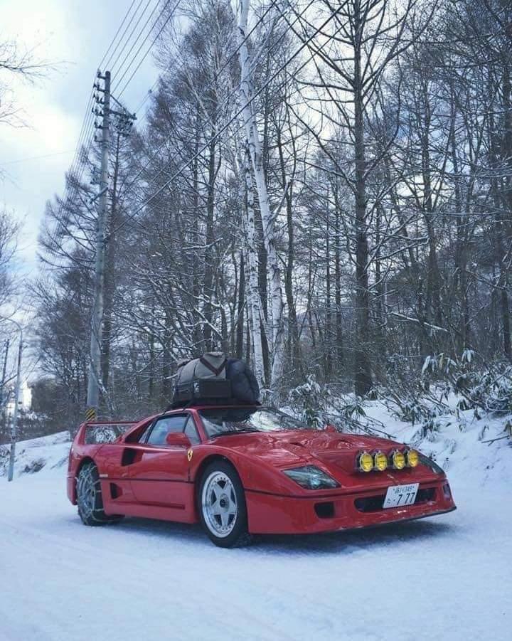 F40 mit Schneeketten. Hätt' mir das jemand vor 5 Minuten gesagt, ich hätte ihn für verrückt erklärt. 😎