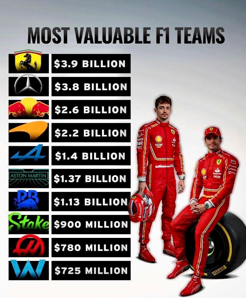 Interessante Grafik über den Marktwert der 2024er F1-Teams: