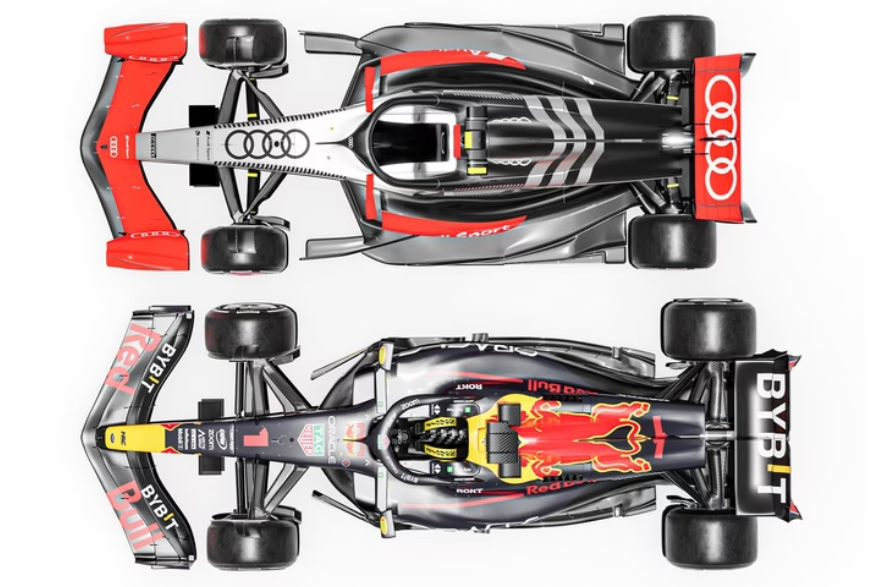 Durch den ab 2026 vorgeschriebenen kürzeren Radstand und aerodynamische Reglementierungen werden die Autos auch insgesamt kürzer. Hier ein direkter Vergleich 2026 vs. 2024.