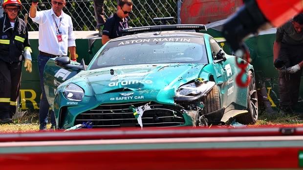 Bremsprobleme am Aston Martin sorgten bereits am gestrigen Nachmittag für einen Crash des Safety Cars. Bernd Mayländer und sein Copilot blieben glücklicherweise unverletzt.