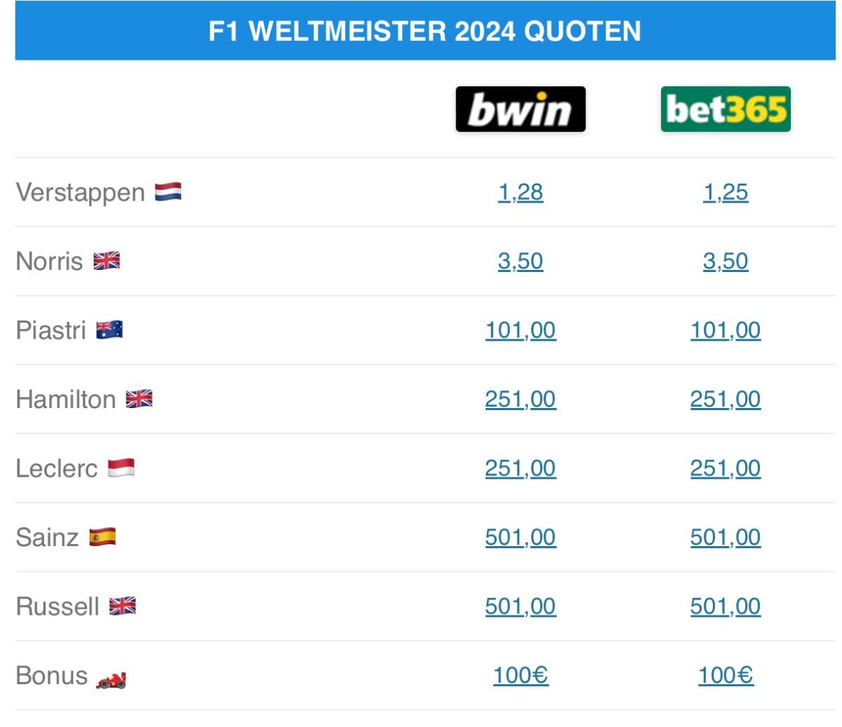 Was bedeuten diese Quoten genau? Wenn ich 1,- auf Verstappen setze und er wird WM, bekomme ich dann 1,28 zurück, oder wie funktioniert das?