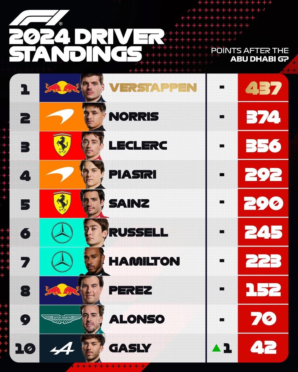 Jahresendstand F1-Saison 2024: