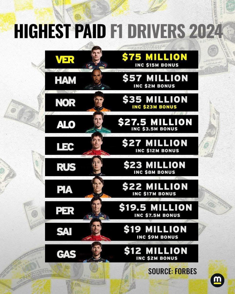 Hier mal eine von Forbes durchgeführte Recherche über die Fahrergehälter 2024:
